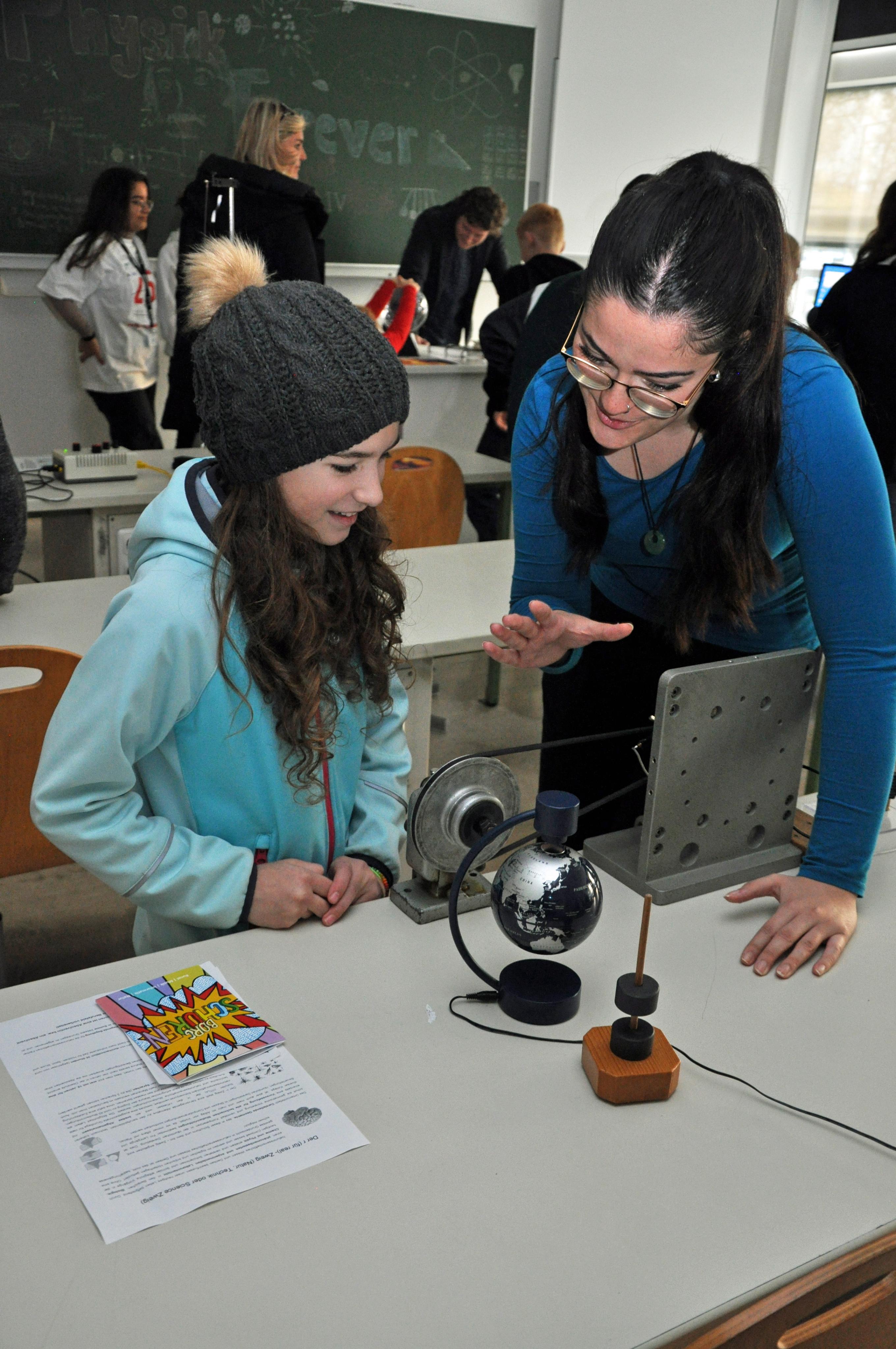 Geduldig führte die Oberstufenschülerin die junge Besucherin in die Geheimnisse der Physik ein.