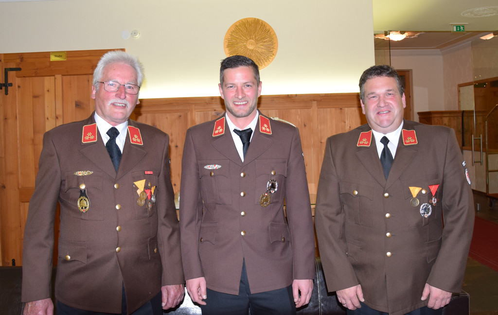 Kommandant Lukas Schwarz mit den Ehrenkommandanten Ignaz Eugster und Albrecht Fuchs.
