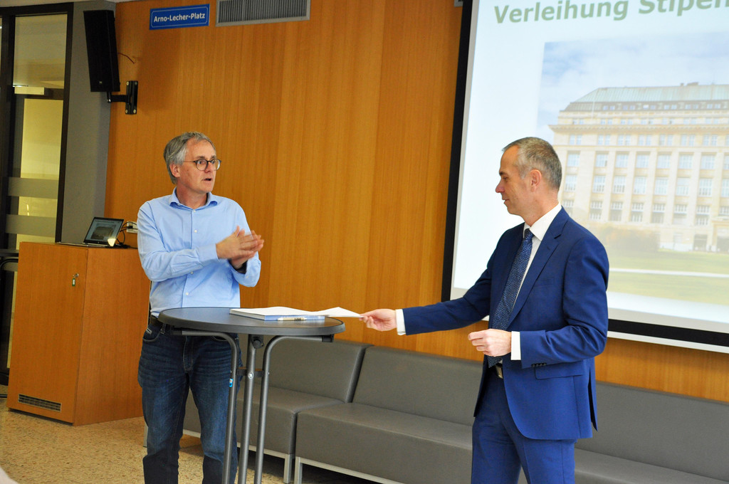 Johann Scheffknecht, Direktor der HAK Lustenau, begrüßte Armin Schneider, Leiter der OeNB-Zweiganstalt West an der Schule.