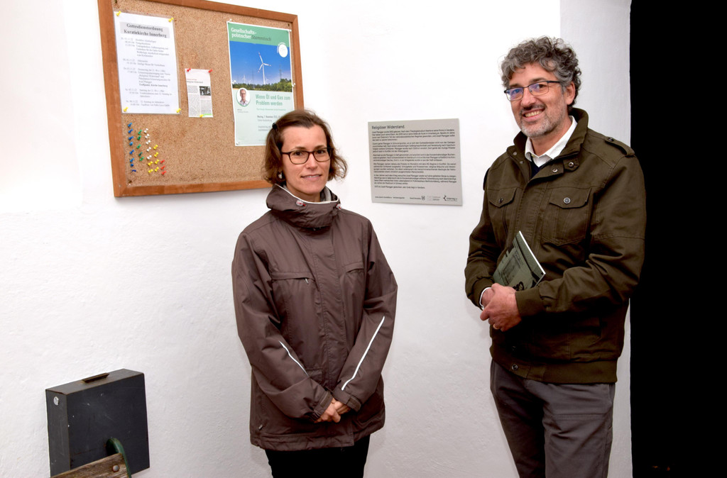 Dir. Michael Kasper (Montafoner Museen, Leiter des Bereiches Kulturwissenschaft beim Stand Montafon) mit seiner wissenschaftlichen Mitarbeiterin Sophie Maier