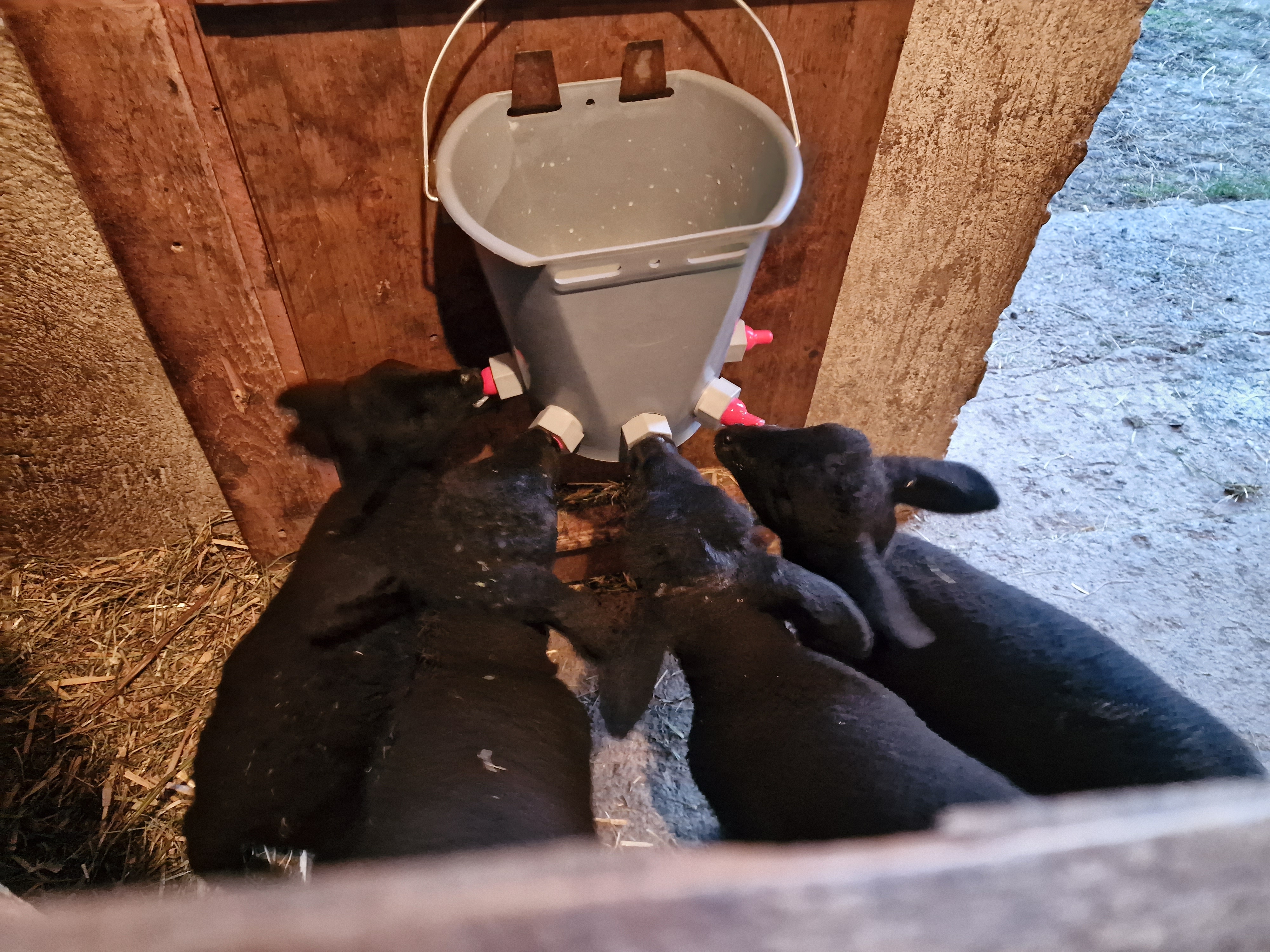 Auch die anderen Schafe finden die vier Lämmlein aufregend.