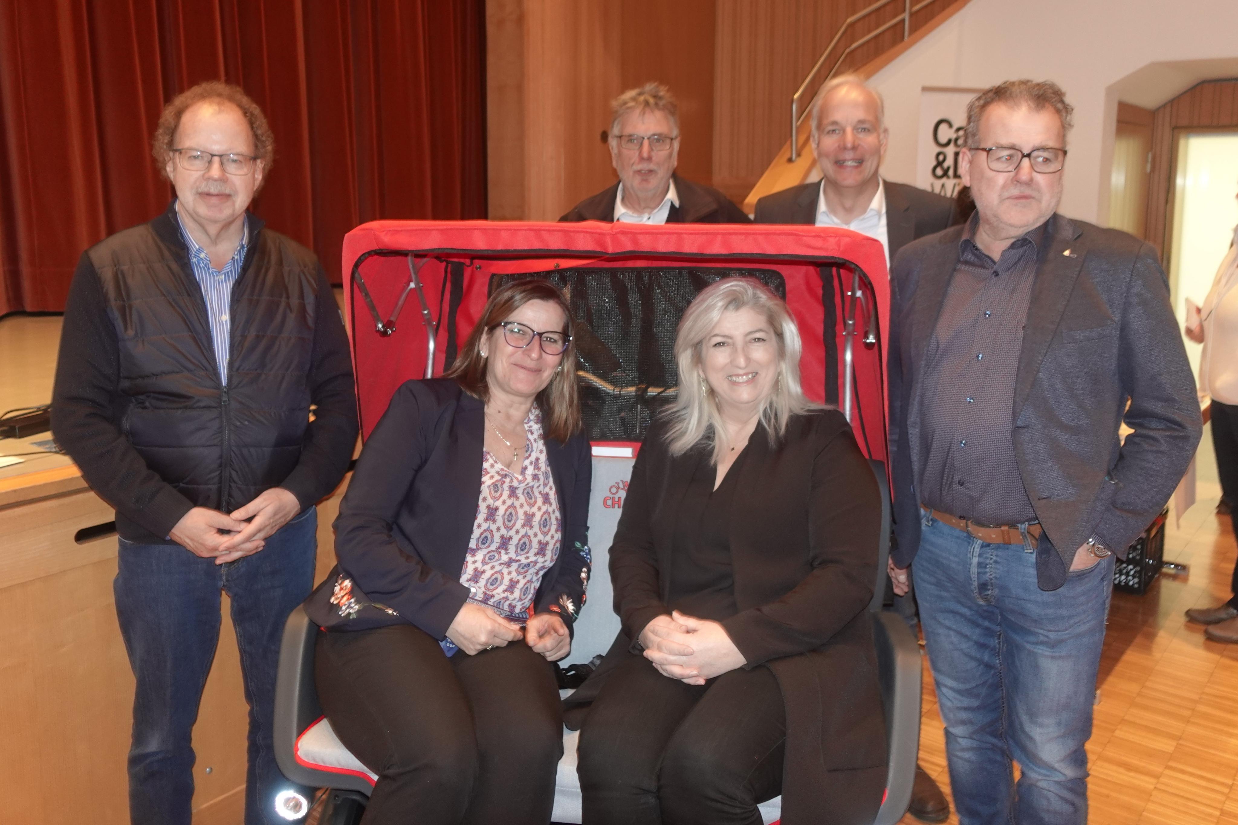 Der Geschäftsführer des Haus Nenzing, Herbert Feurstein, nutzte die Gelegenheit, um Piloten für die neue Fahrradrikscha zu gewinnen.