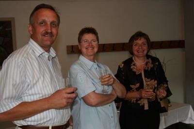 Hannes, Silvia und Margarita beim Sektempfang