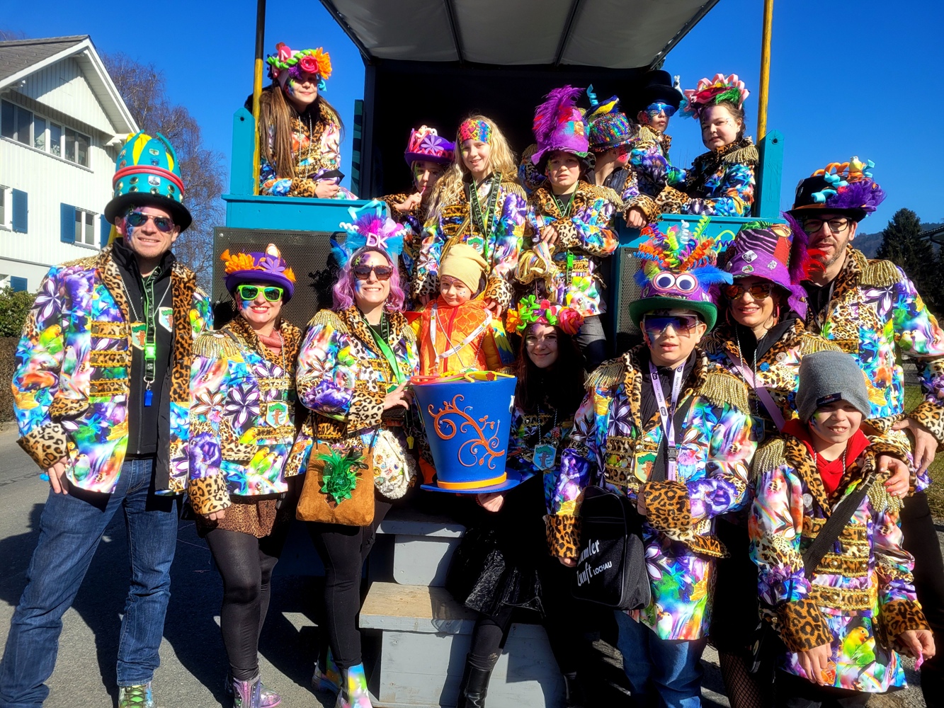Lochau wurde zum närrischen Treffpunkt der Region. Die Faschings- und Funkenzunft Bäumle als bunte „Bäumler Paradise“-Gruppe mit ihrem „Bürgermeister“ Stefan Pienz.
