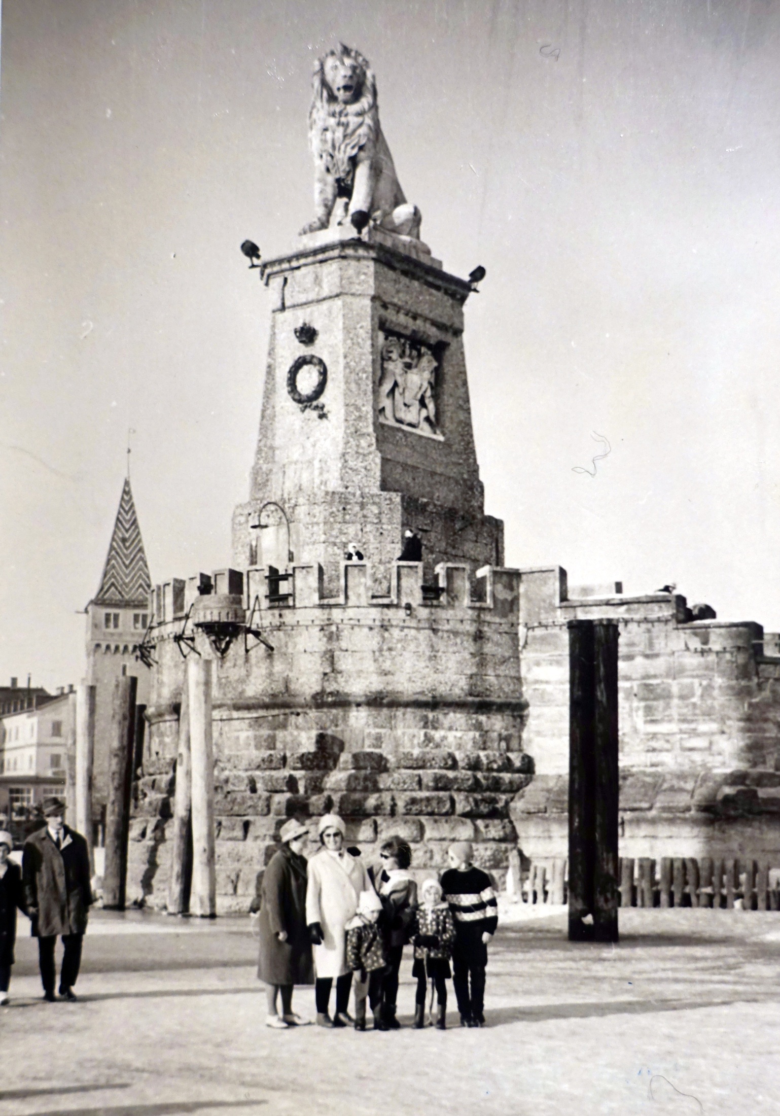 Die Familie Bennat auf dem Bodensee am 3. März 1963 vor dem bayrischen Löwen der Lindauer Hafeneinfahrt. (Foto: Erwin Bennat)