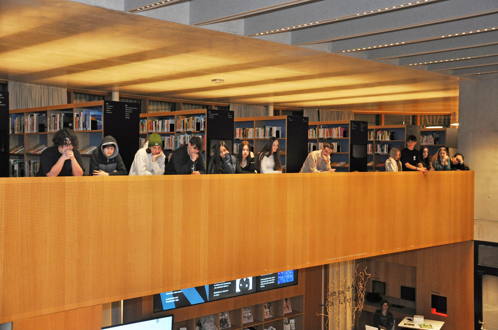 Eine Schülergruppe verfolgte den Vortrag von der „Empore“ aus und brachte sich auch in die anschließende Diskussion ein.