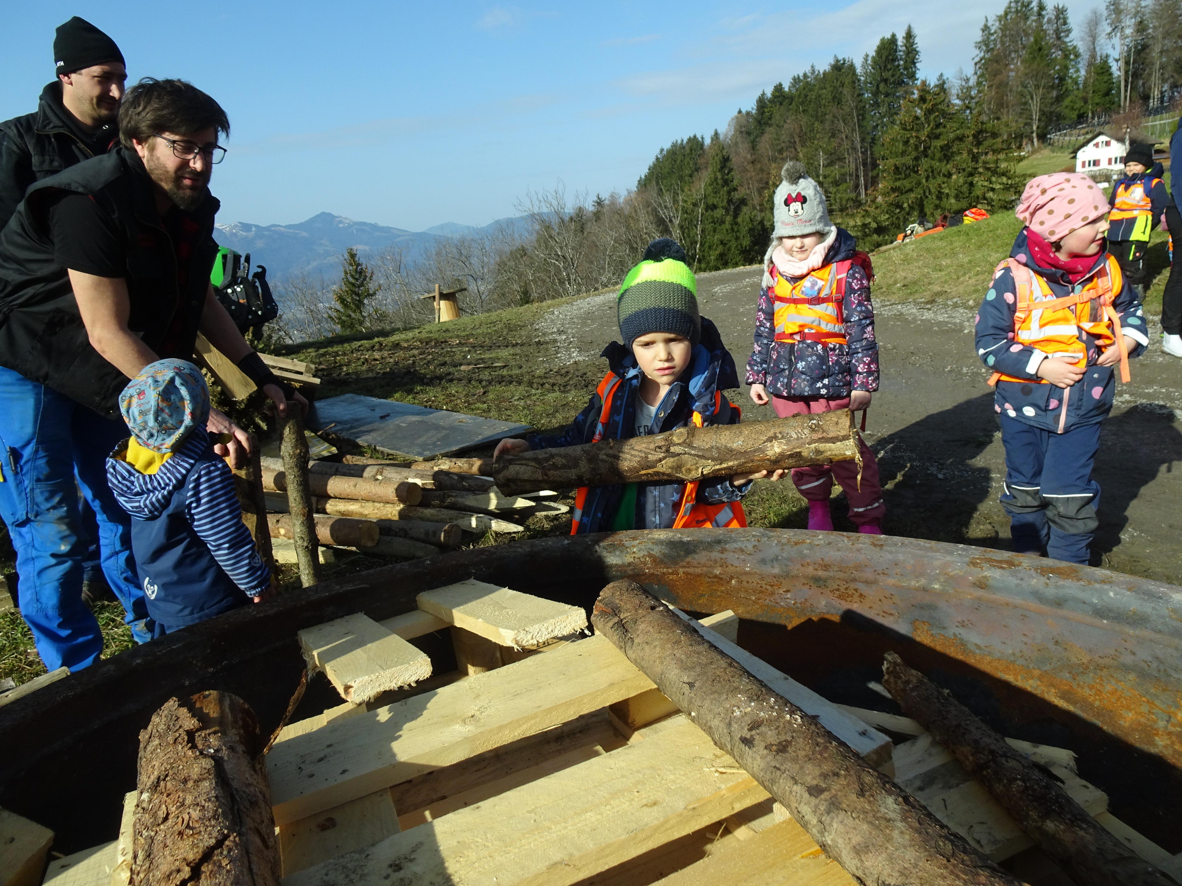 Die Fraxner Kinder bauen einen Kinderfunken