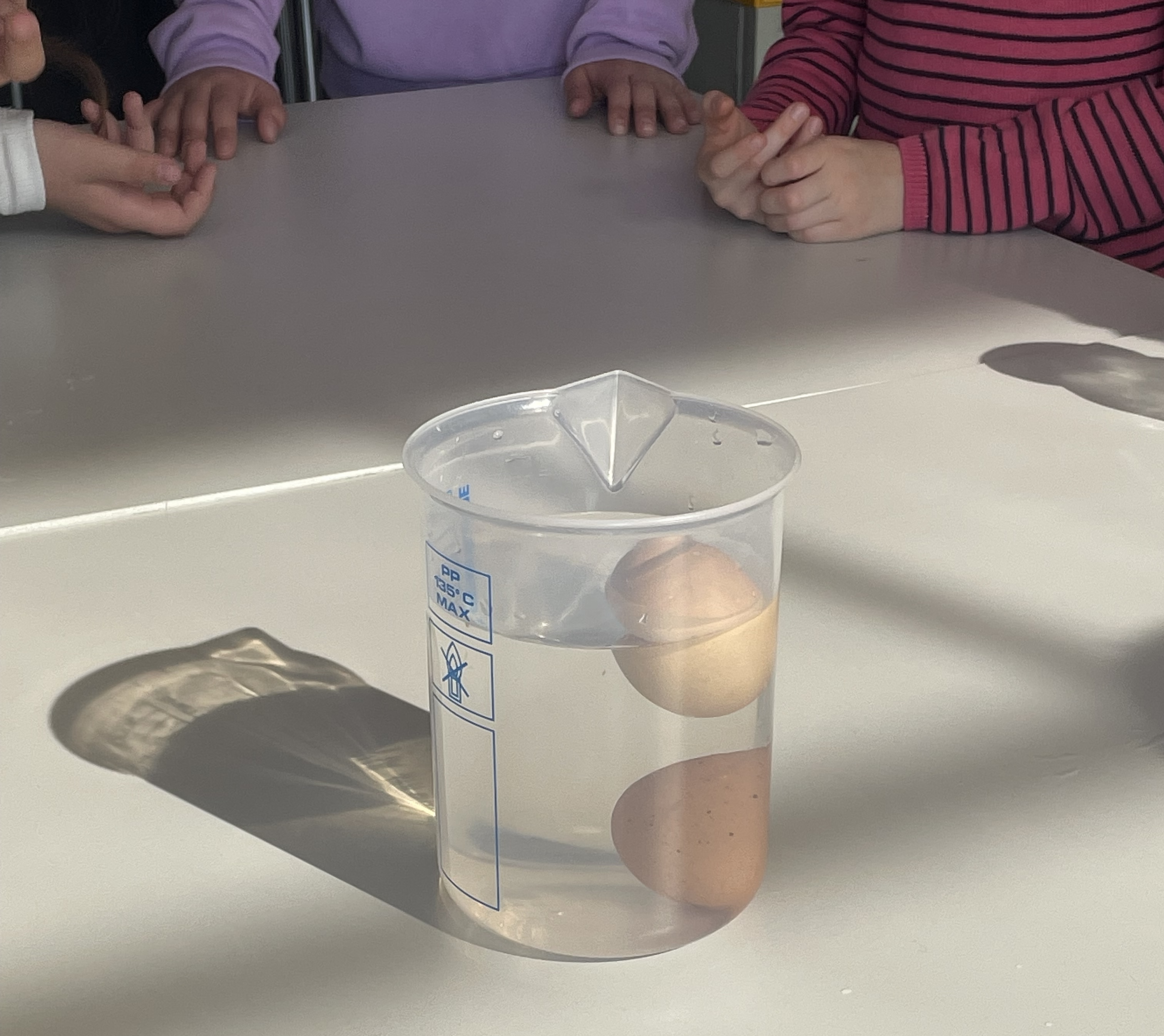 Im Glas konnten die Kinder erkennen, welches Ei schon alt oder frisch war.