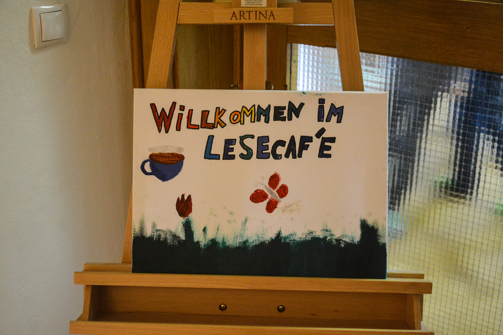 Extra für die Lesewoche wurde der Bewegungsraum zum Lesecafé umgebaut.