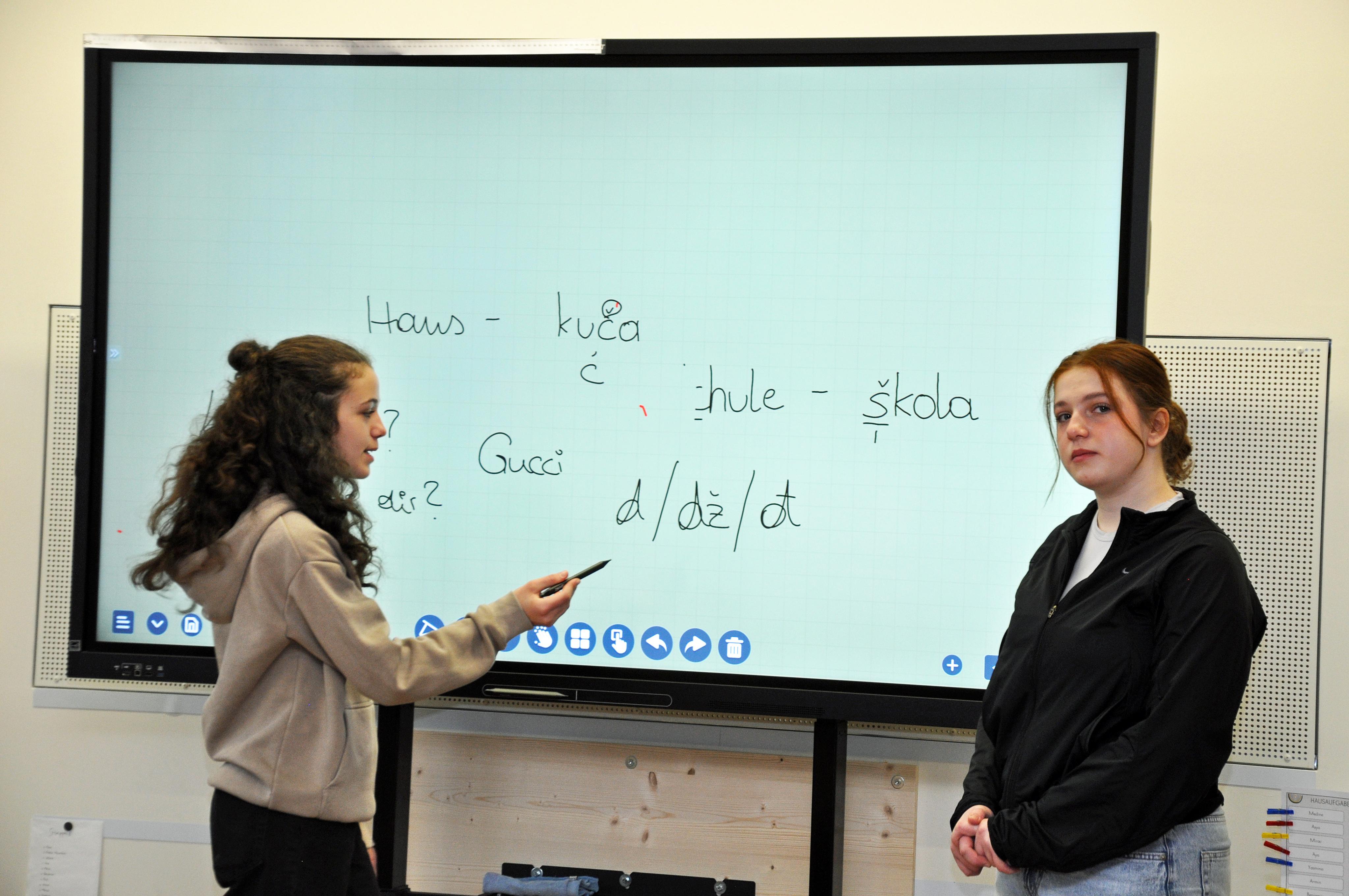Zwei ehemalige Schülerinnen stellten ihre Muttersprache Bosnisch vor.