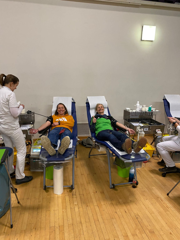 Petra und Simone beim Blutspenden