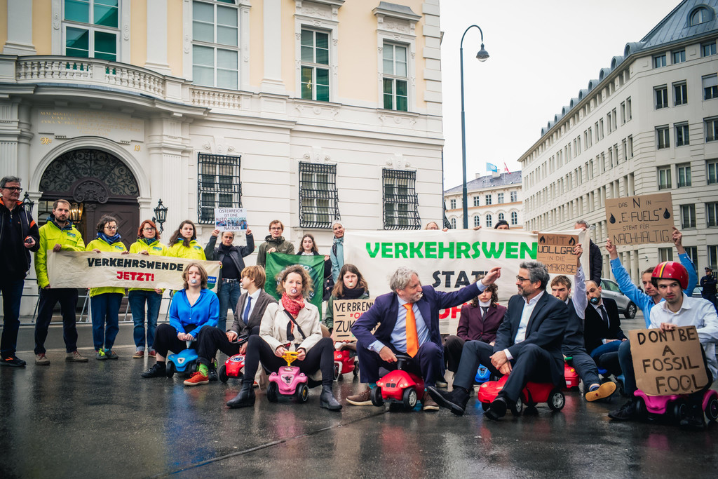 Global 2000: Protest gegen Nehammer und E-Fuels