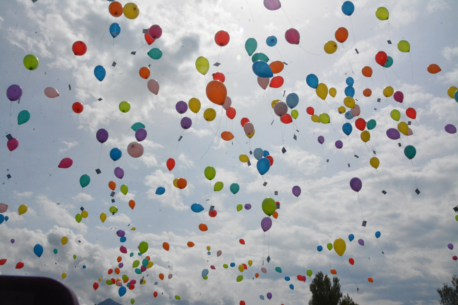 Und dann flogen die vielen Kinderwünsche an den Luftballons in den Himmel.