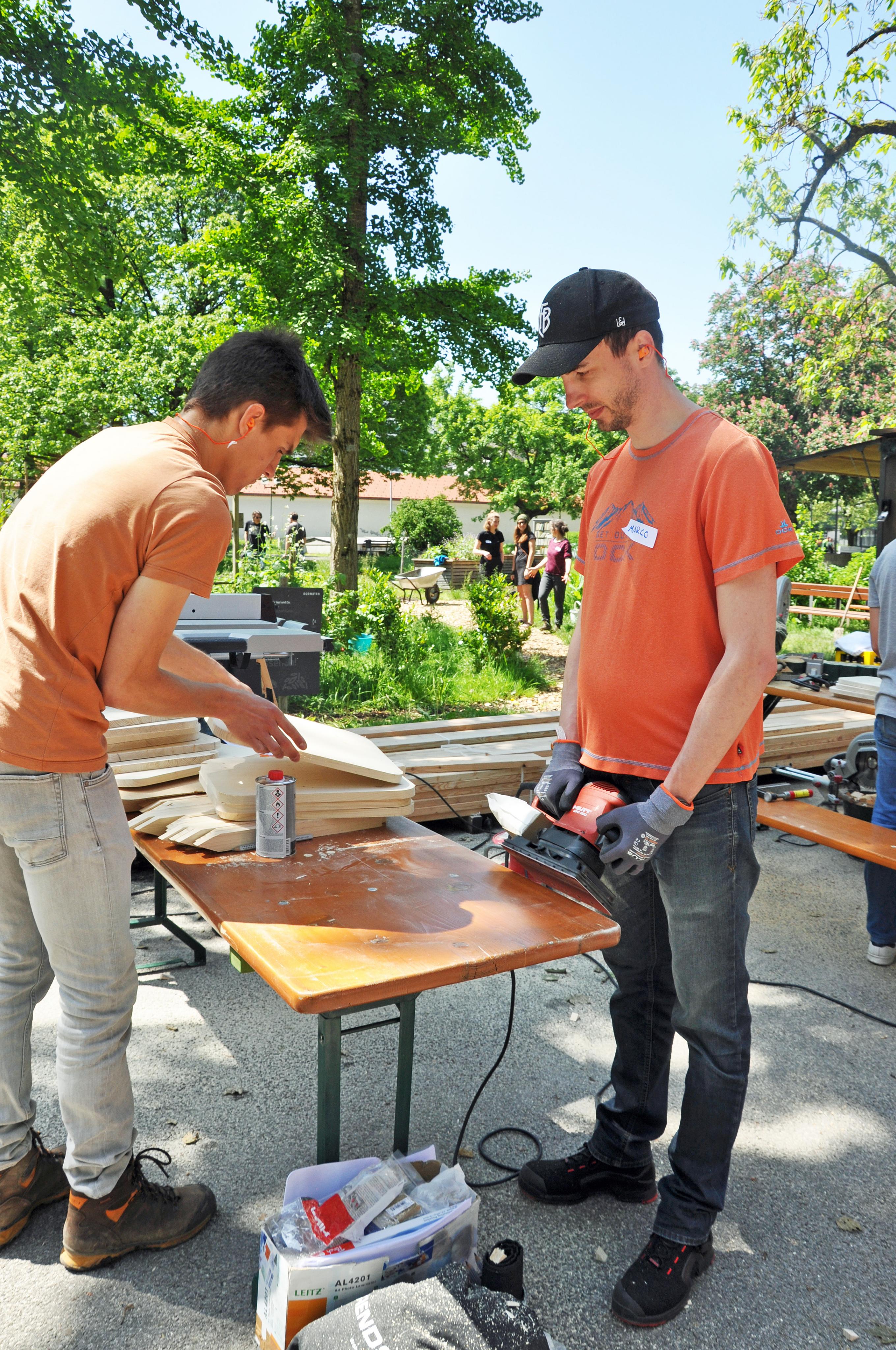 Gleichzeitig wurden Holztäfelchen für die Hochbeete angefertigt.