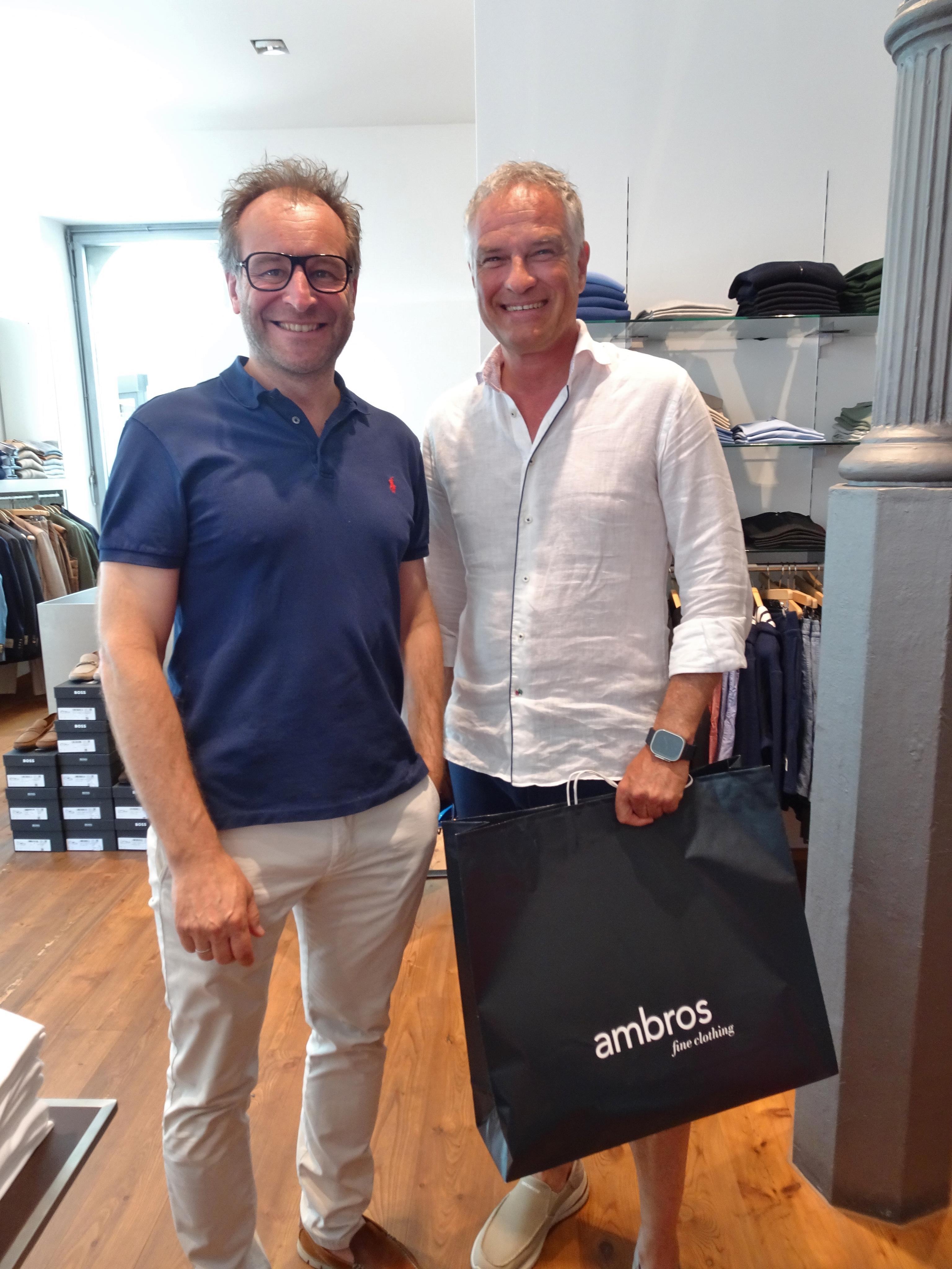 Kulturstadtrat Alexander Juen und Mario Leiter schauten bei Ambro Fine Clothing und dem Duo Subklang (Zuko Samela, Paula Gomez) vorbei.
