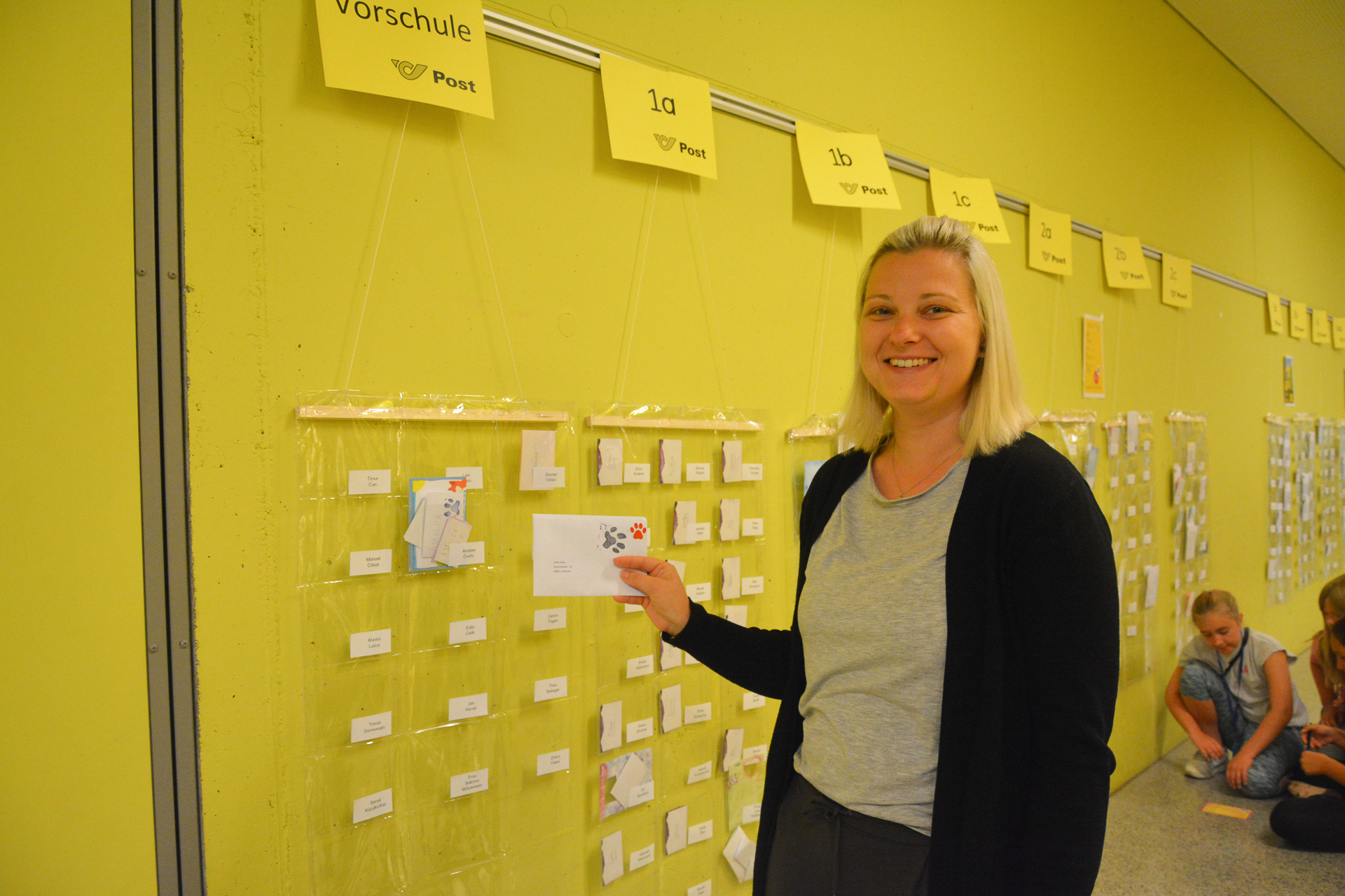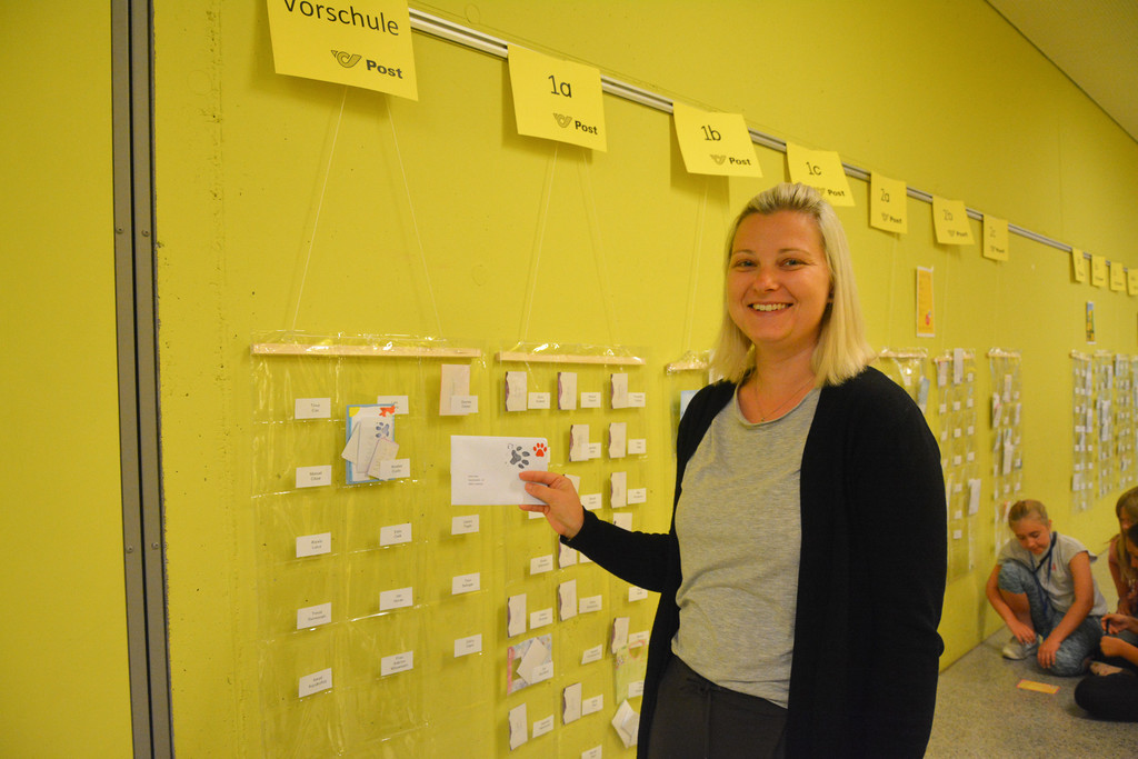 Die interne Poststelle teilt die Briefe zu. Jene mit einem Hundepfoten-Stempel werden außerhalb von Edlach-City von den Briefträgern mit den Schulhunden zugestellt.