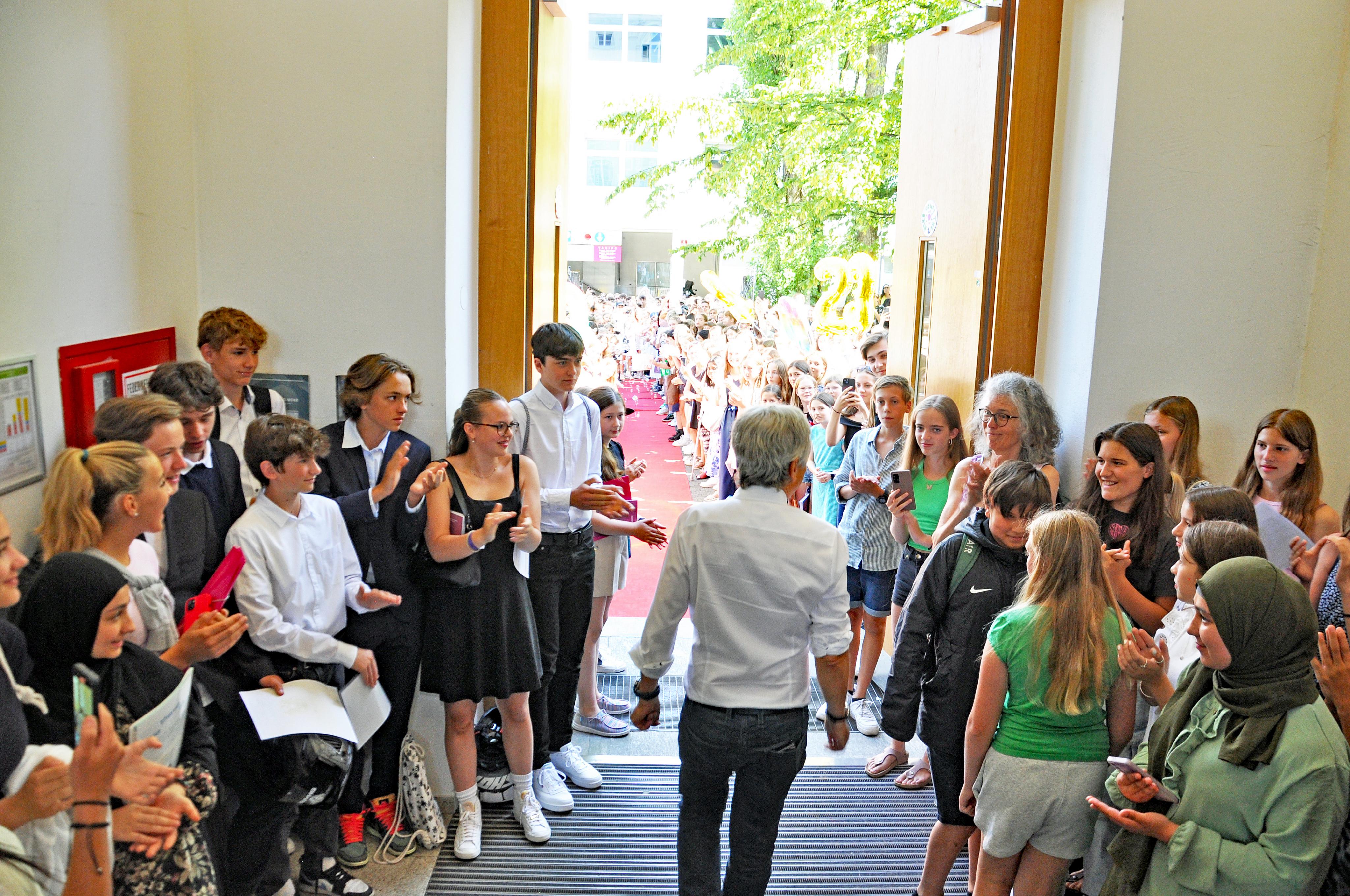 Das Schülerspalier setzte sich vor der Schule fort.