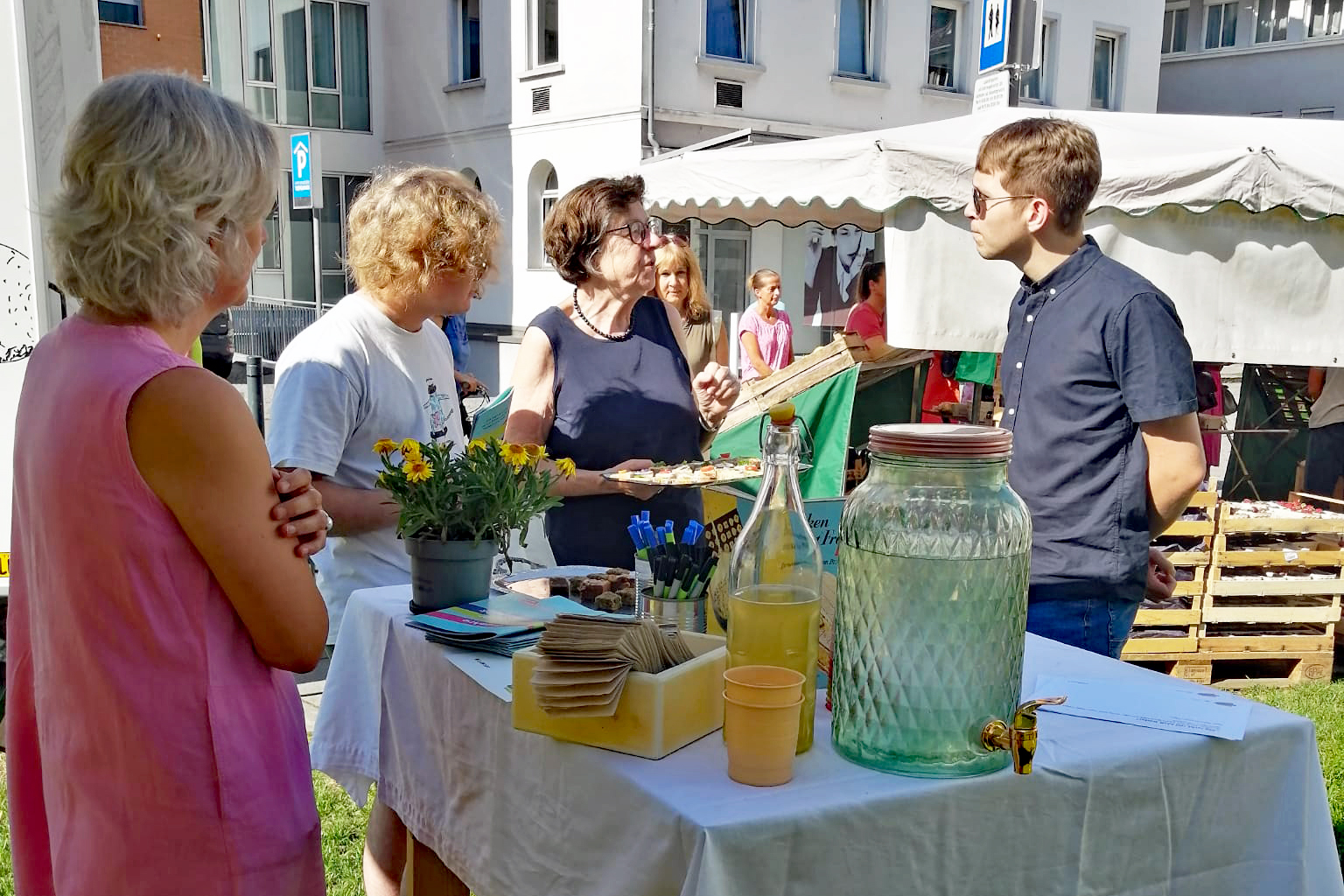 Unter dem Motto „Ma iarbt nid bloß Böda“ wollten die Mitglieder des Offenen Kühlschranks und die Projektbegleiterin des Museums, Barbara Motter, von Passanten wissen, welche überlieferten Rezepte und Haushaltstipps sie heute noch verwenden.