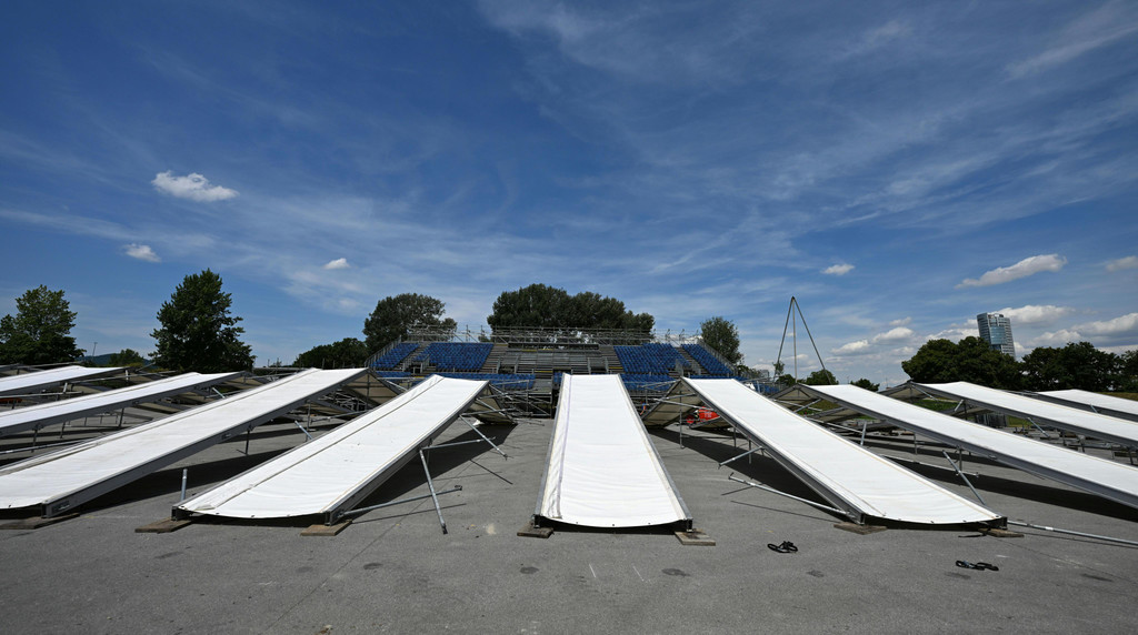 Aufbauarbeiten für die Beach-Volleyball-EM in Wien