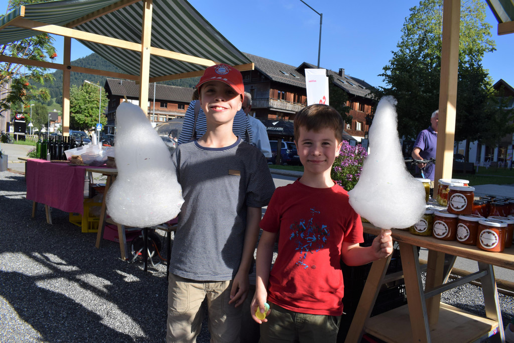 Kilian und Maxi lassen sich die Zuckerwatte schmecken.