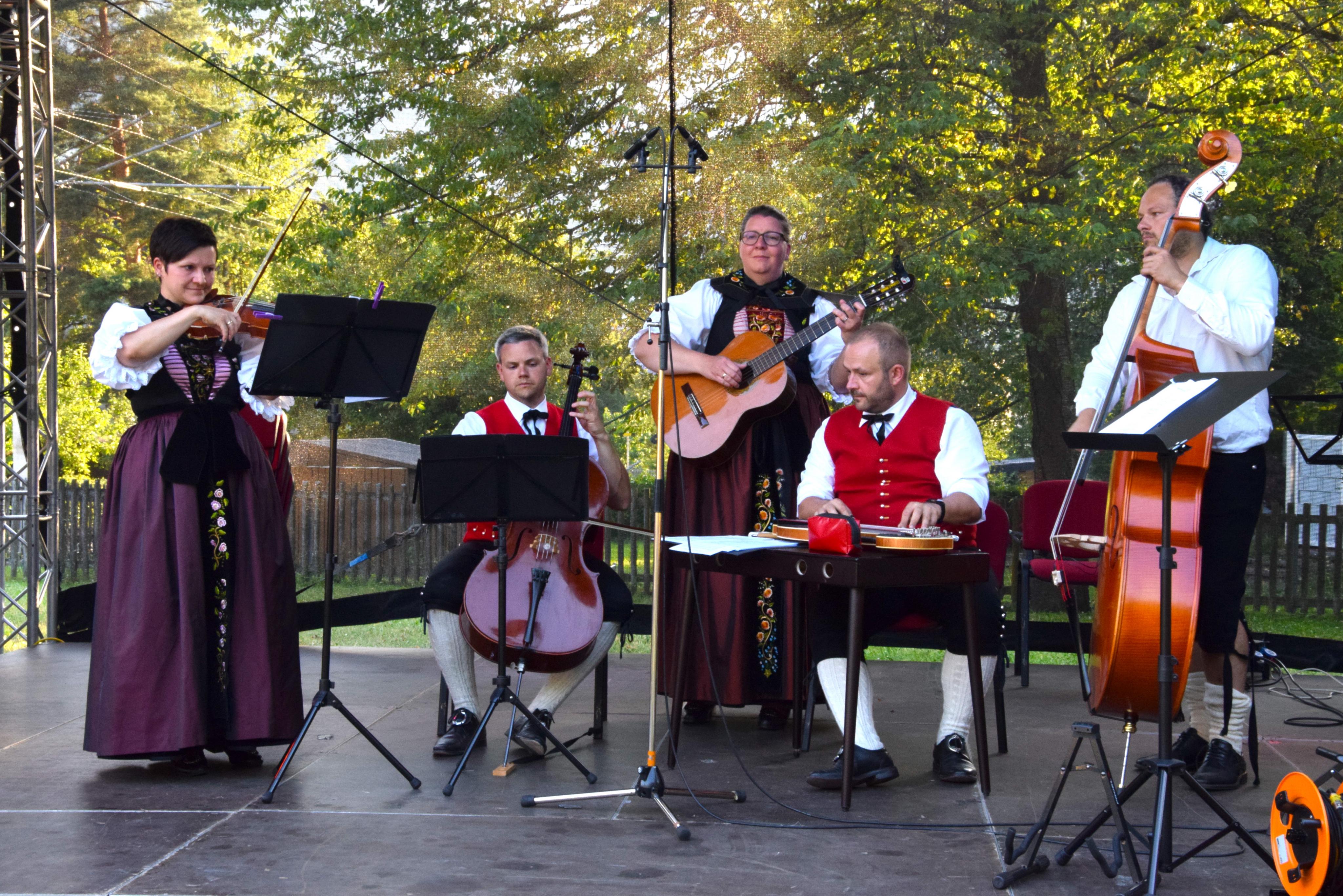 Die Saitenmusik Vandans, die Stubenmusik der Trachtengruppe Vandans, beim Heimatabend im Rahmen der "sommerbar23" in Schruns.
