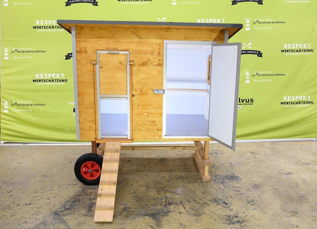 Der Musterstall wurde so konzipiert, dass bis zu acht Hennen gehalten werden können, er kann aber jederzeit nach Wunsch individuell angepasst werden.