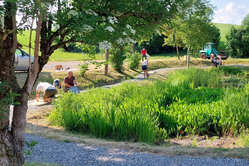 Viele Helferinnen und Helfer legten bei der Errichtung der Barfußspirale tatkräftig HAnd an.