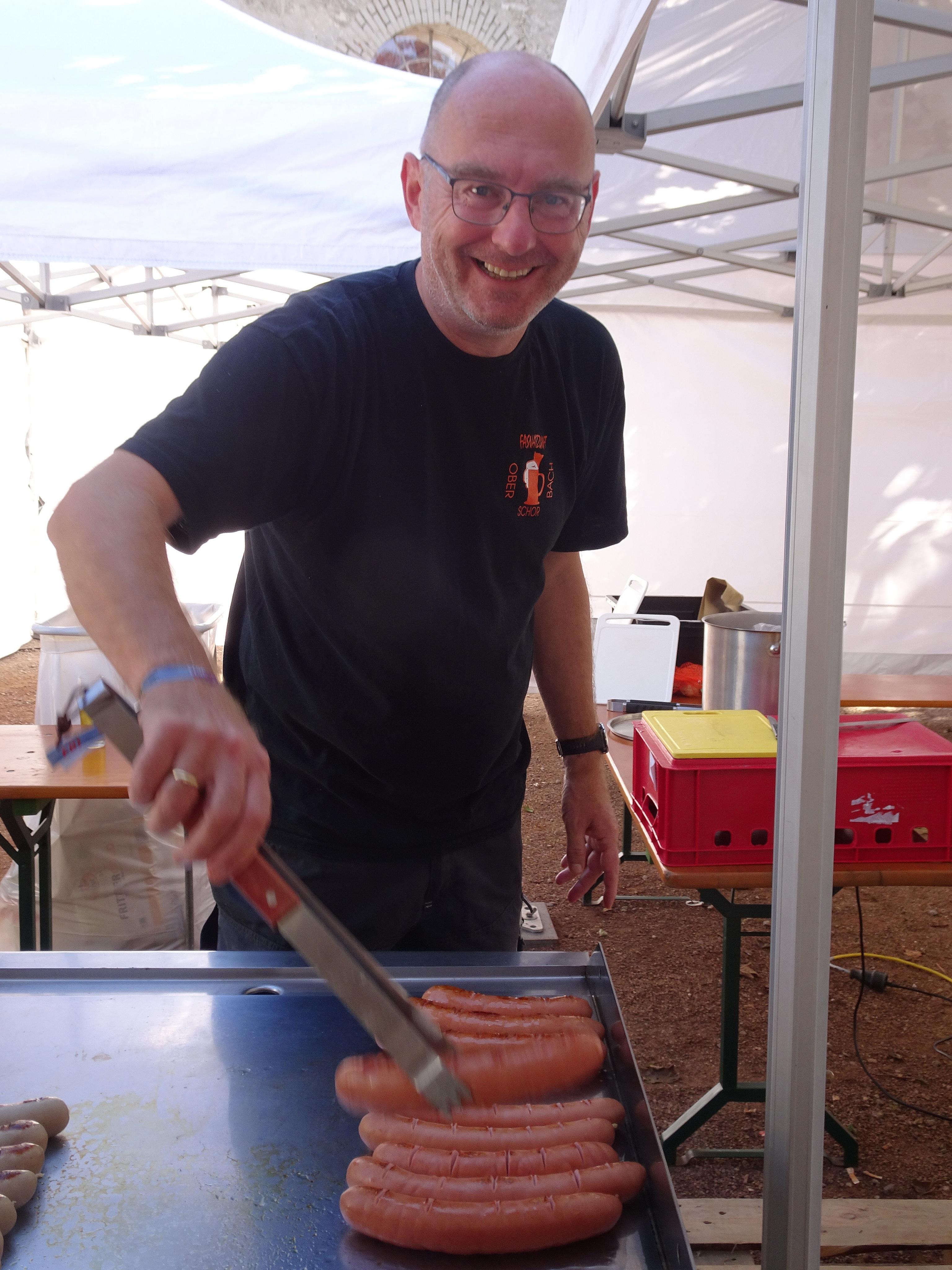 Martin Rein von der Fasnatzunft Oberschorbach versorgte die Gäste mit Grillwürsten.