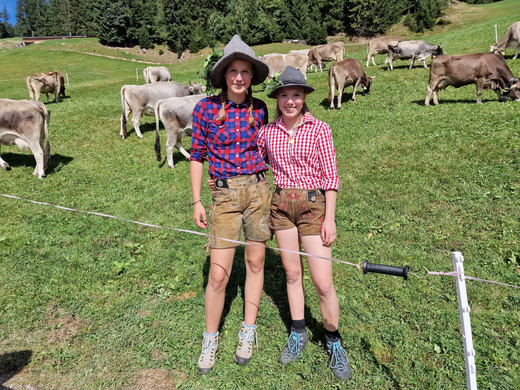 Megacooles Älplerteam mit schönen Kühen