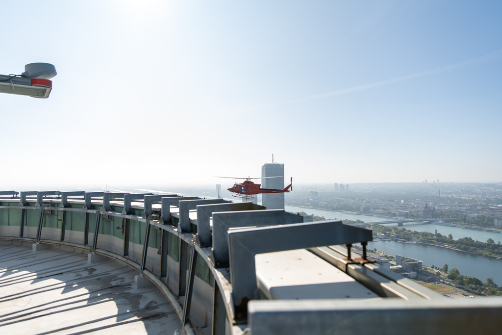 Donauturmrutsche per Heli angeflogen