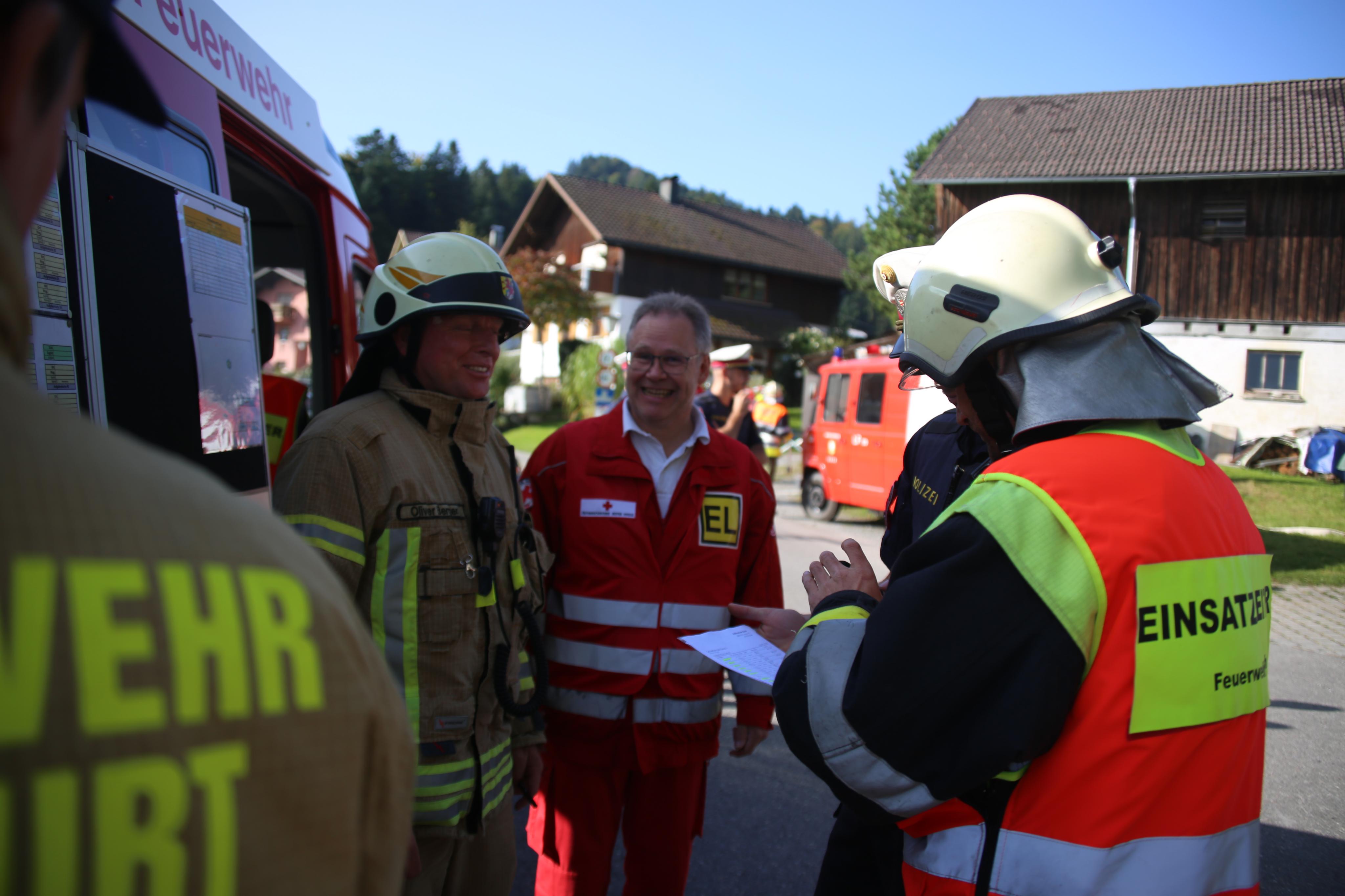 Den Überblick zur großen Schauübung gab es beim Einsatzleitfahrzeug der OF Wolfurt