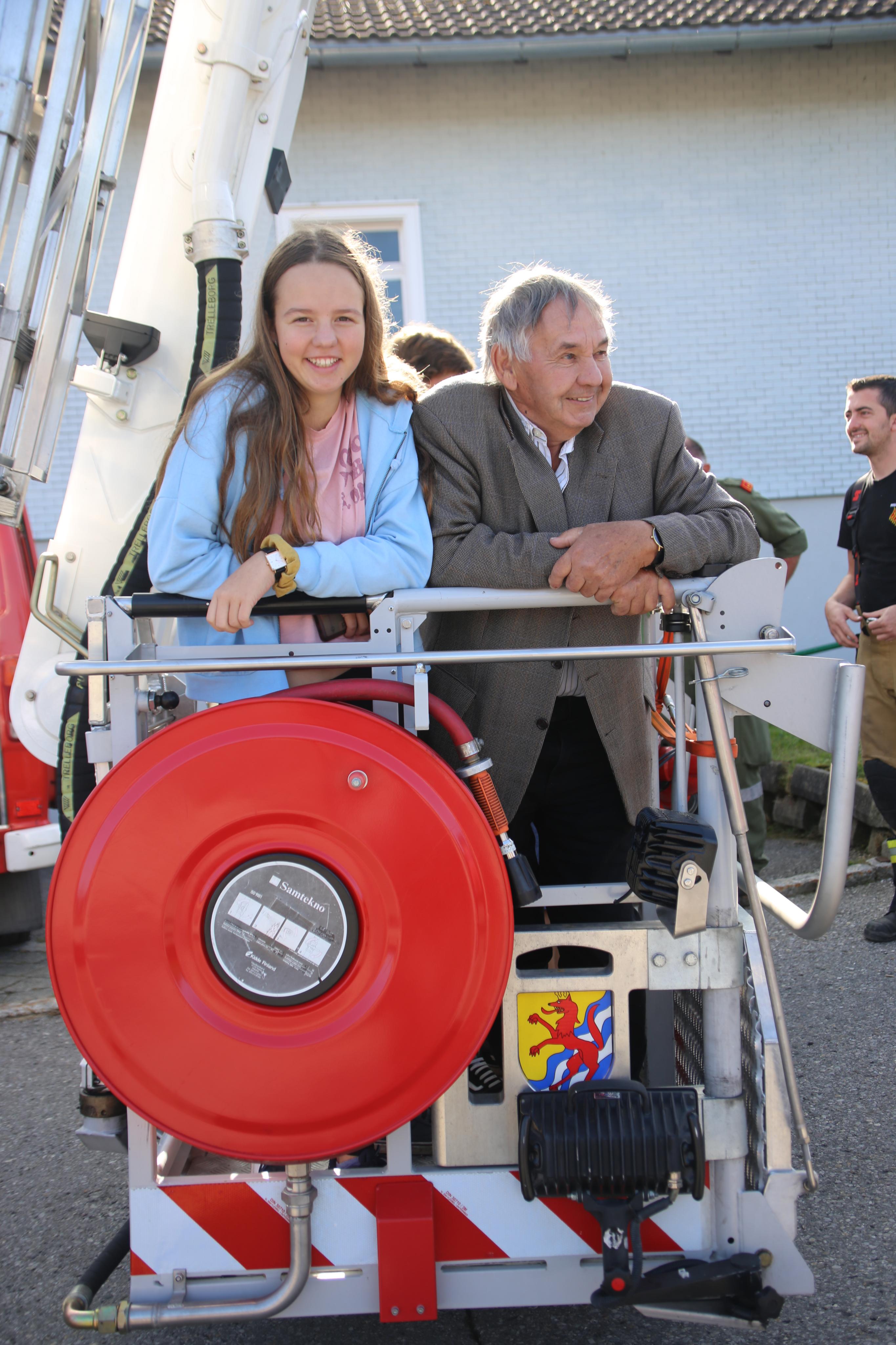 Die Gäste des Sicherheitstages genossen die Fahrt mit dem Steiger der Wolfurter Wehr. Das Ganze bei Kaiserwetter.