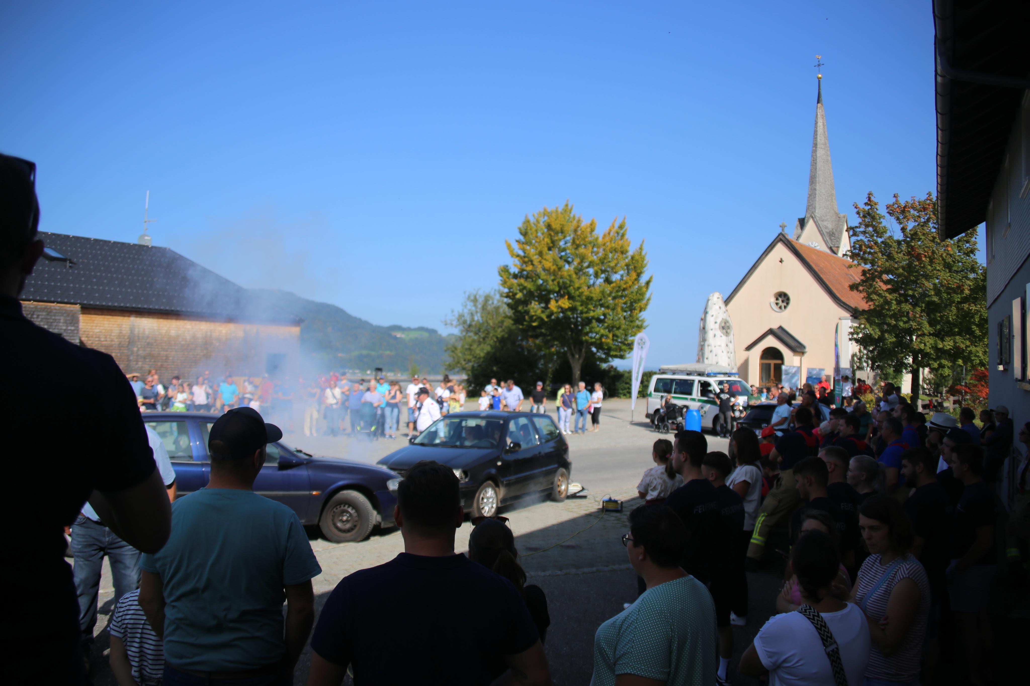 Verkehrsunfall im Dorfzentrum: Viele Zaungäste verfolgten auch am Nachmittag die Zusammenarbeit der Einsatzkräfte bei der zweiten Großübung.