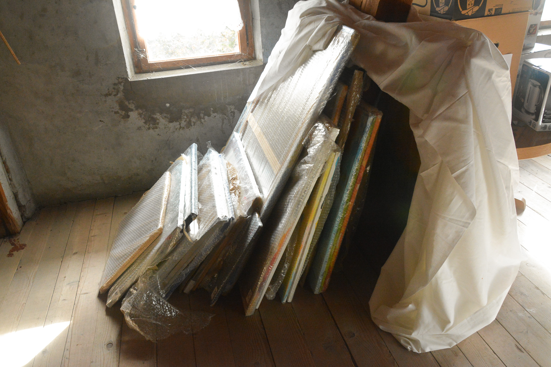 Auf dem Dachboden warten die Bilder nun auf ihre neuen Besitzer.