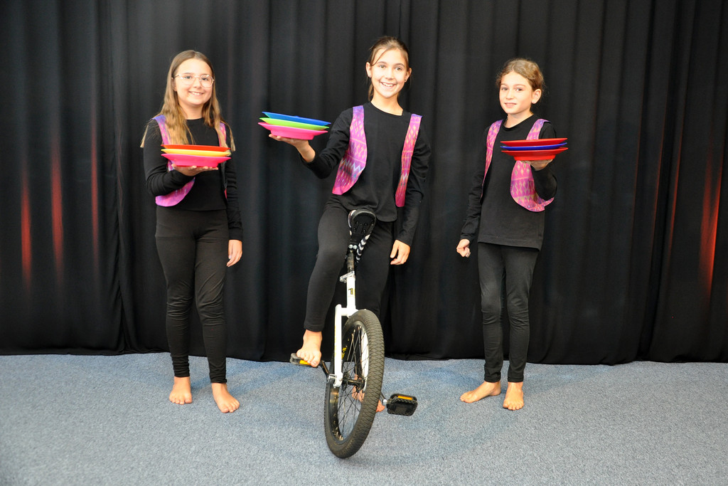 Auch die Einrad-Artistinnen sind dabei.