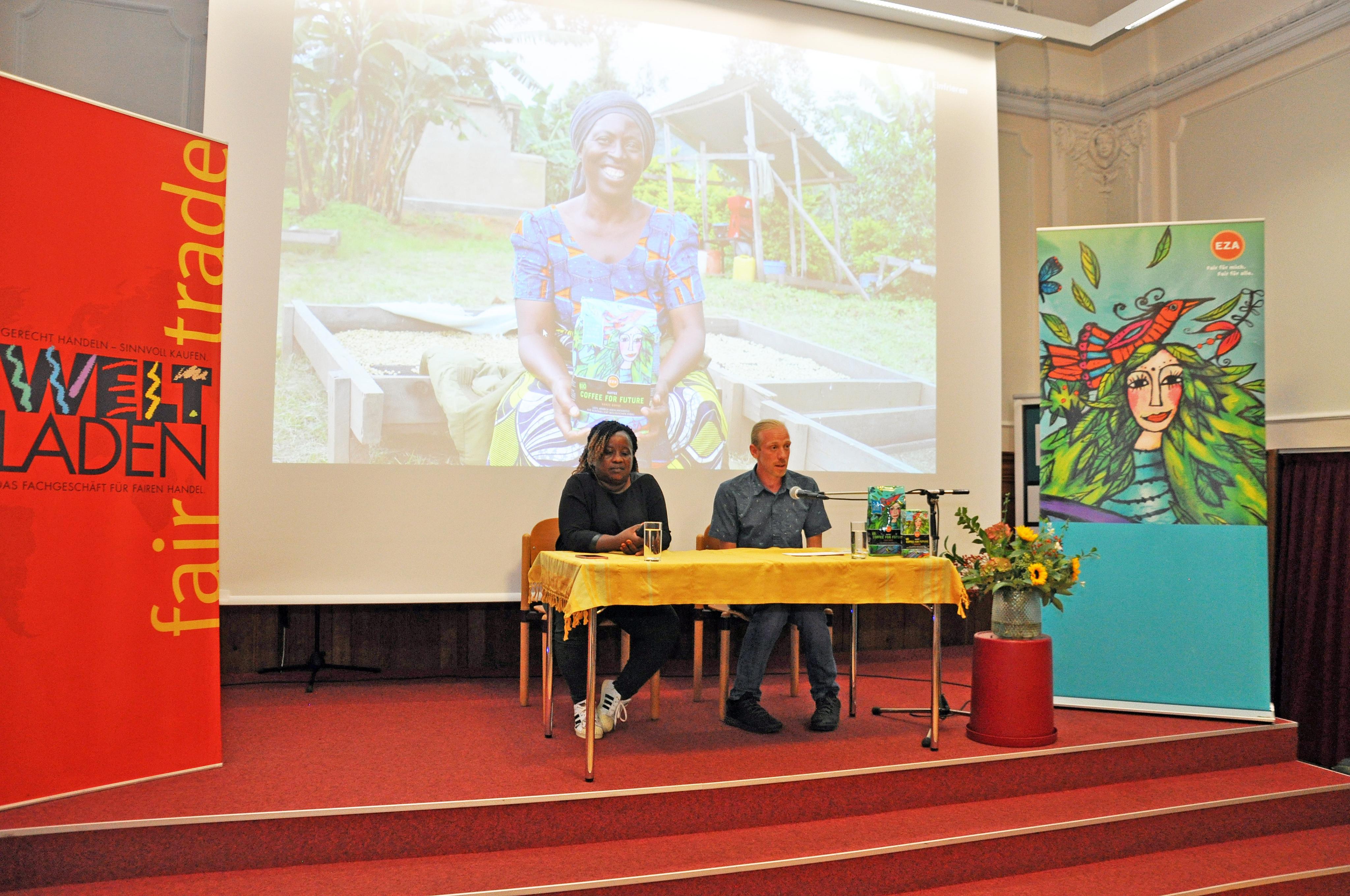 Josinta Kabugho berichtete von den Herausforderungen der Kaffeekleinbauern am Fuße des Rwenzori-Gebirges in Uganda.