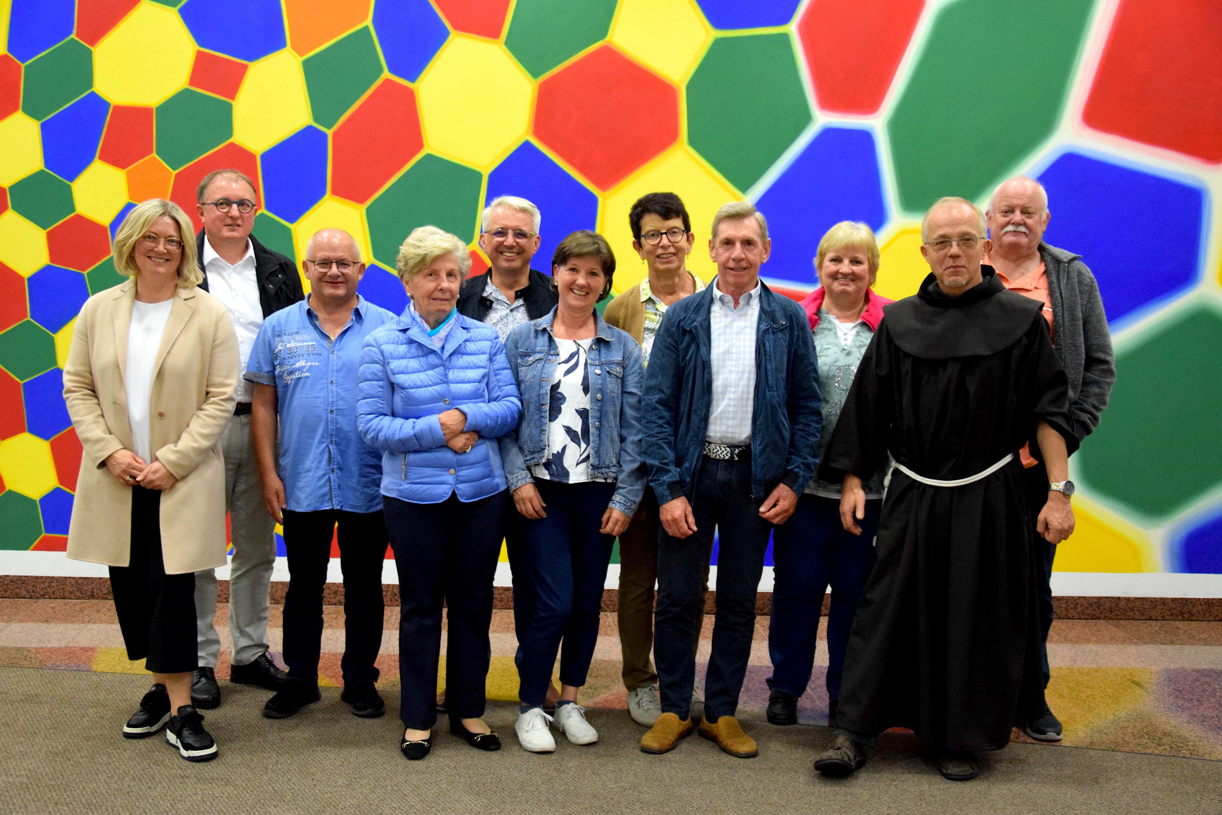 Erntedank-Agape, v. l.: Edith Batlogg mit Ehemann Bgm. Andreas Batlogg, Wilfried Schnetzer, Rosmarie Sauerwein, Manfred und Elisabeth Falch, Doris Ladner mit Ehemann Bgm. a. D. Lothar Ladner, Adele Marte, Pater Guido Kobiec und Franz Marte.