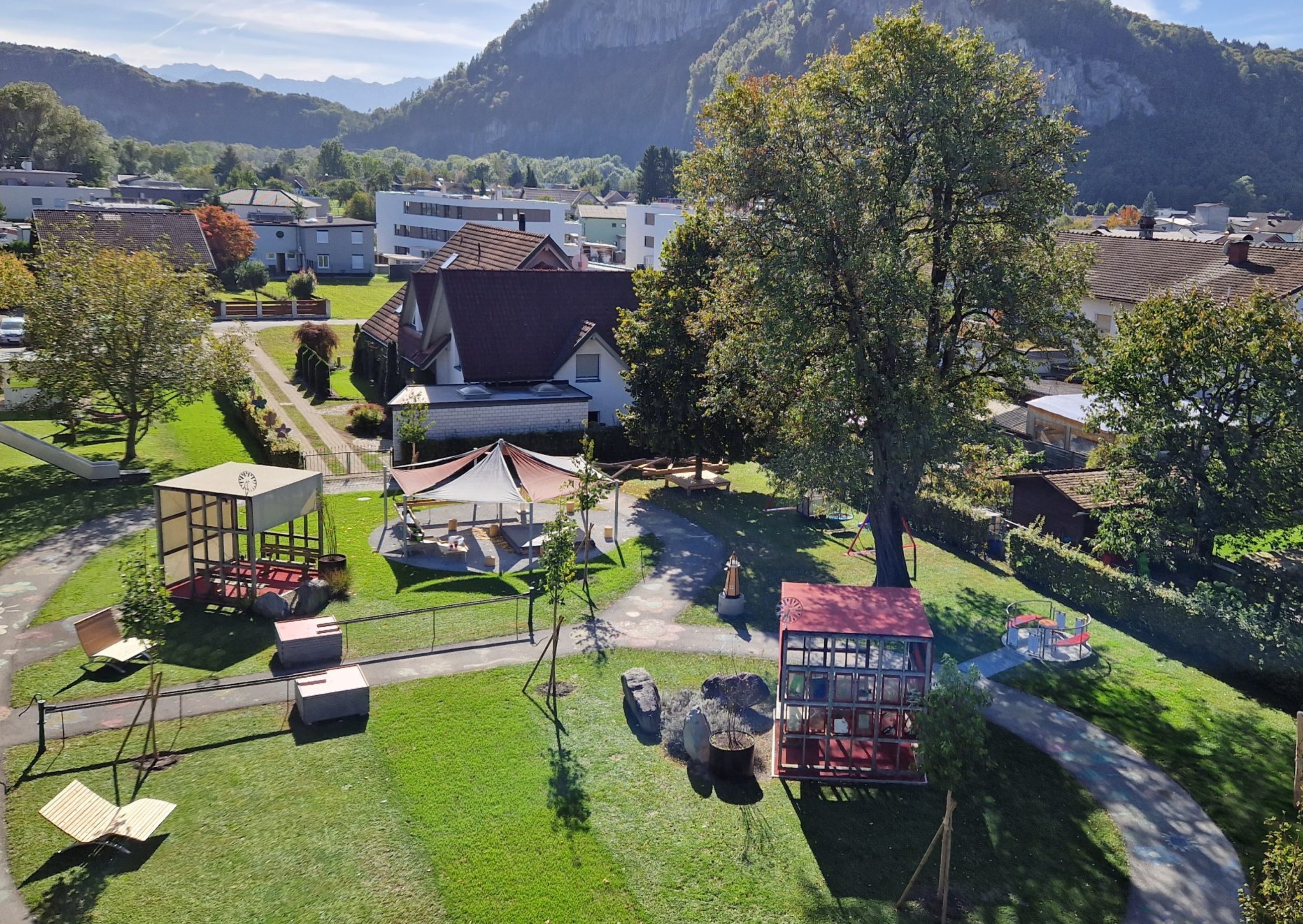 Beim Schulheim Mäder wurde in zahlreiche behindertengerechte Spielgeräte, in Beschattung und in die Begrünung investiert