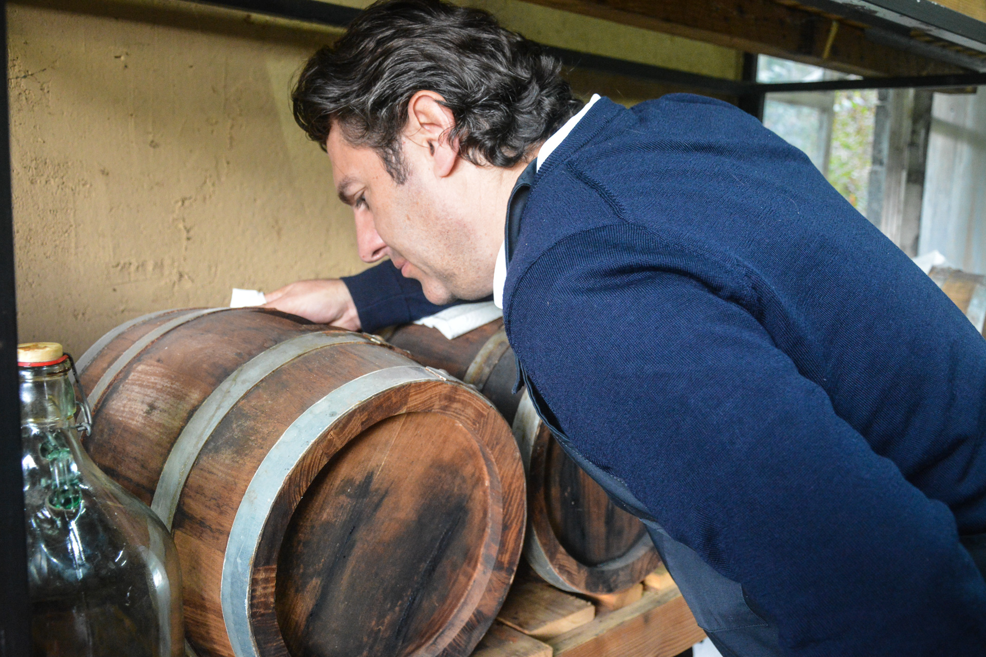 In vielen kleinen Arbeitsschritten wird Aceto Balsamico hergestellt. Dazu zählt auch das tägliche Kontrollieren.