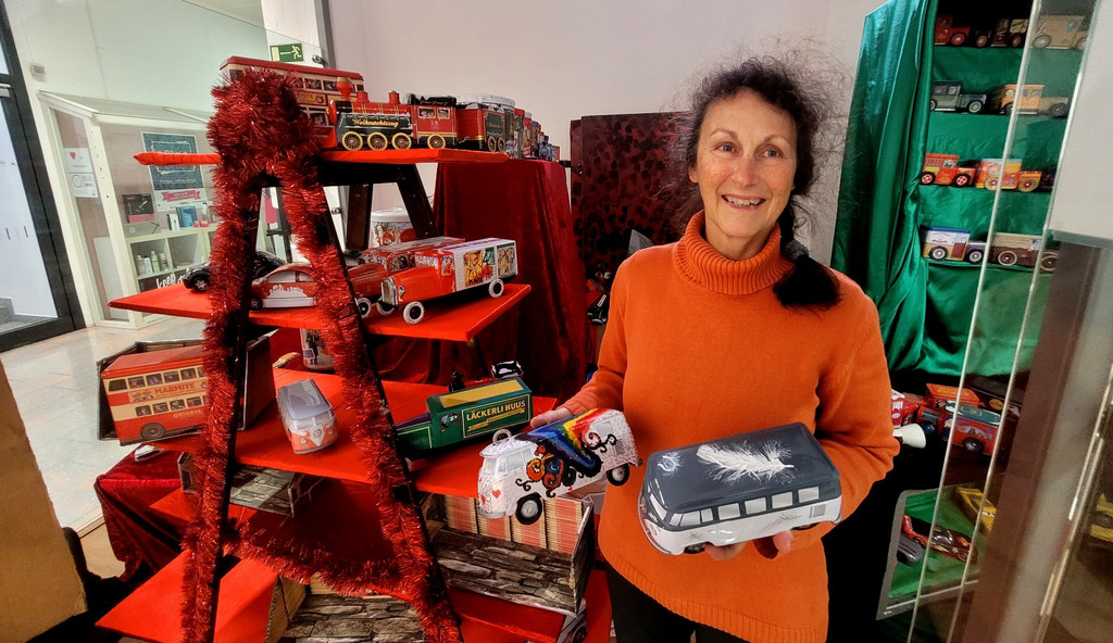 Präsentationen von Künstlereditionen außergewöhnlicher VW-Bully-Blechdosen, gestaltet von Susanne Platzgummer.