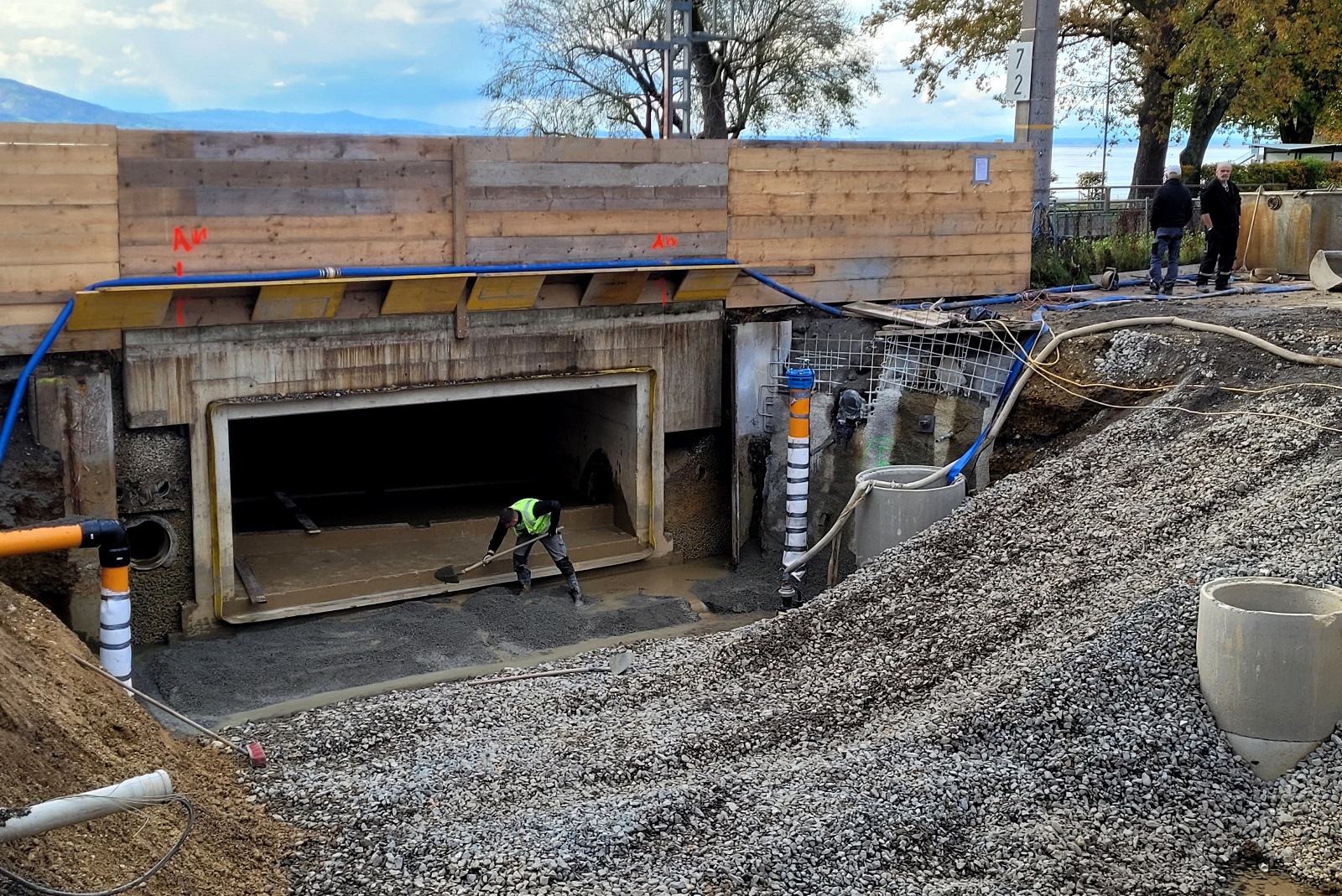 Finale Arbeiten für den Hochwasserschutz im Bereich L190 in Lochau