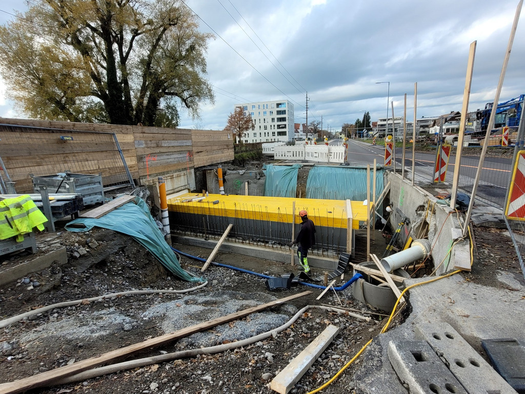 Finale Arbeiten für den Hochwasserschutz im Bereich L190 in Lochau