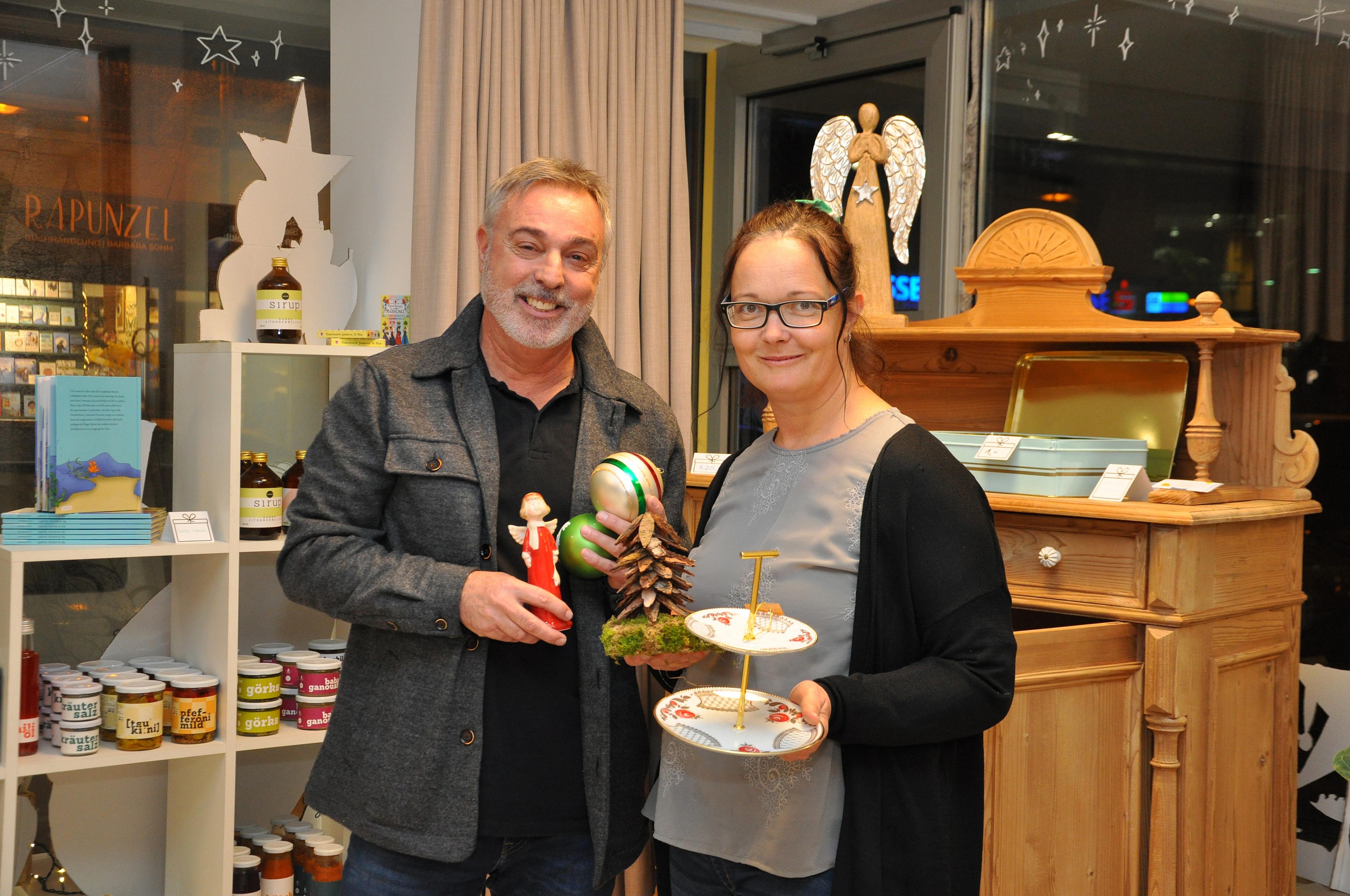 Beiden haben Produkte aus ihren Werkstätten und ihrem Verkaufsprogramm präsentiert und sind damit bis Weihnachten zu Gast im Pop-up-Store „Schenken mit Sinn“.