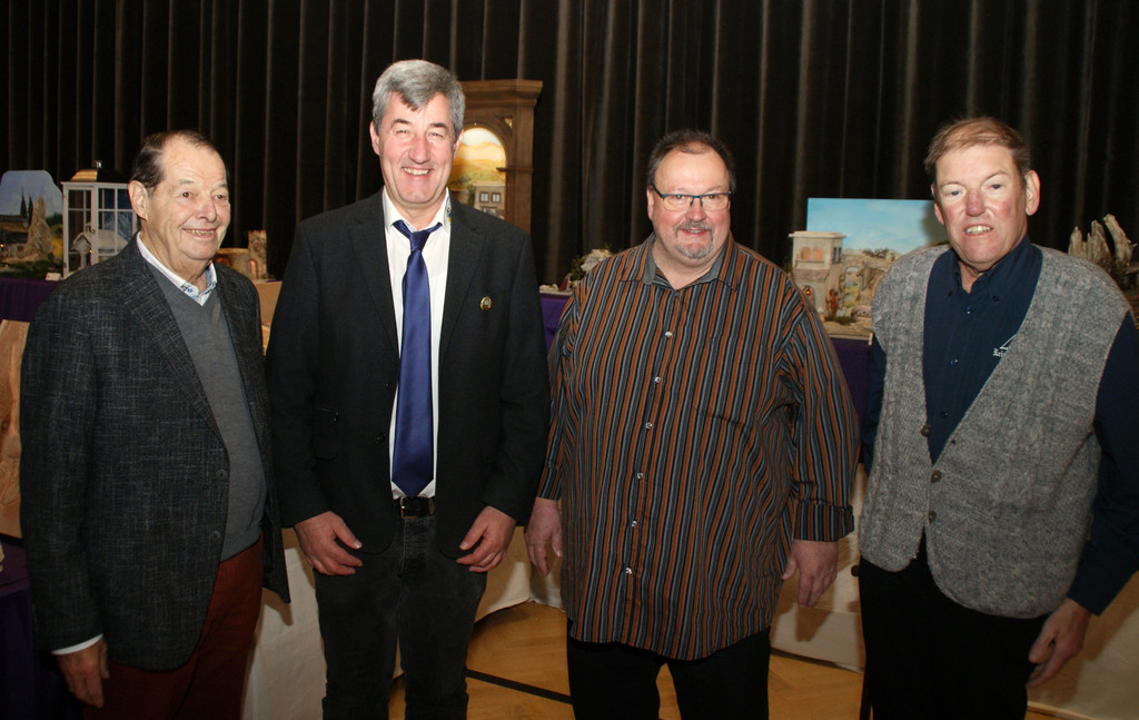 (V.l.n.r.) Ehrenobmann Josef Hagen mit Obmann Dietmar Schneider (Landeskrippenverband), Obmann Helmut Stadelmann mit Ehrenobmann Andi Eberle (Krippenverein Buch).