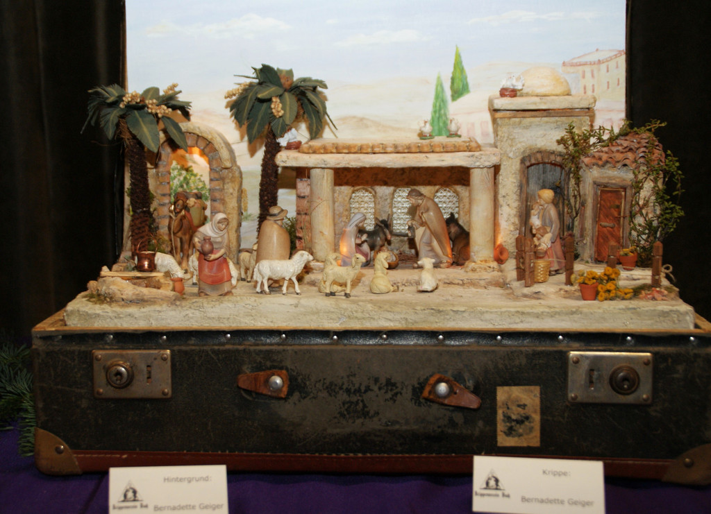 Staunende Blicke für die „Krippe im Koffer“ von Bernadette Geiger aus Buch