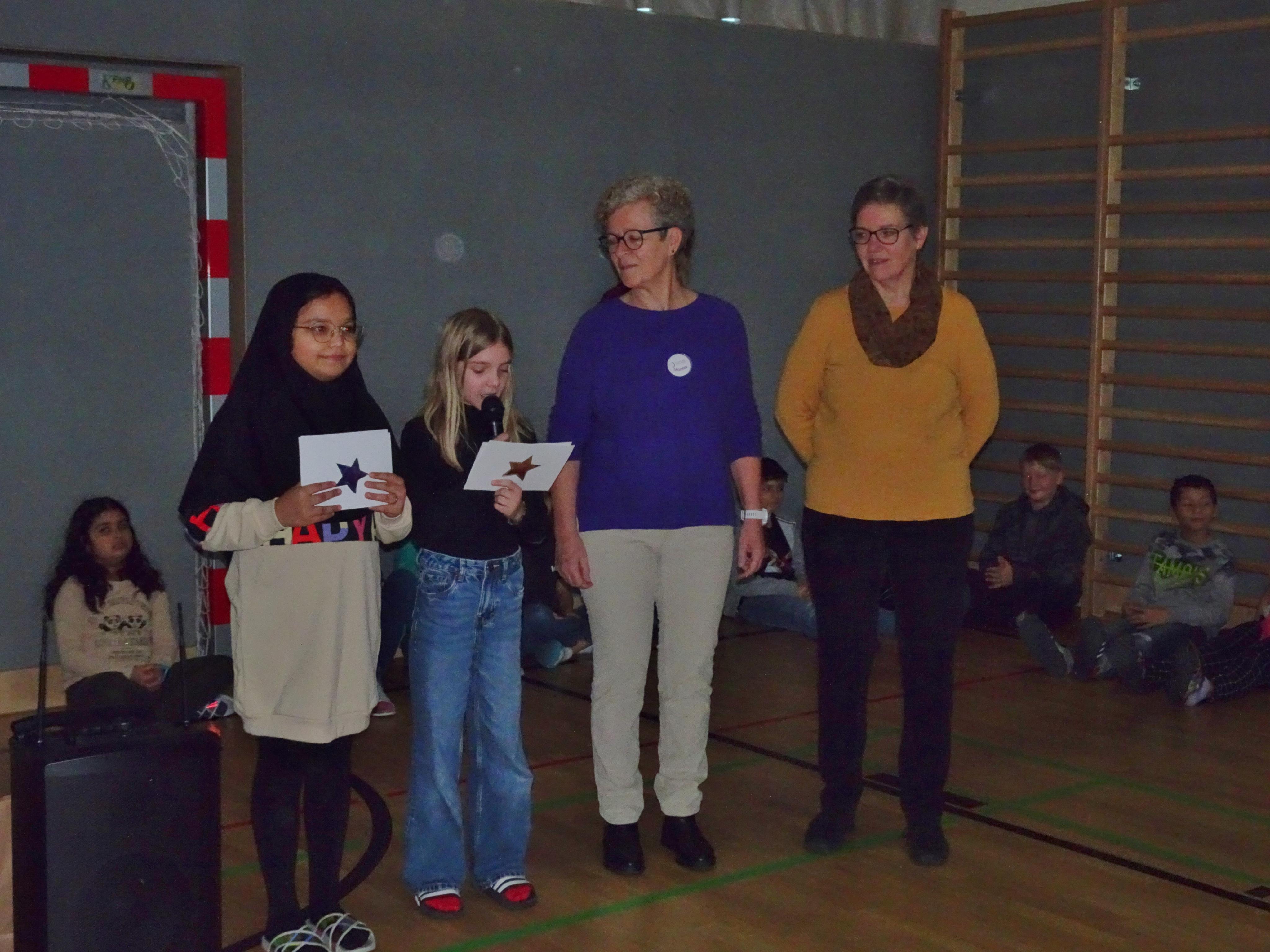 Margit Feuerstein und Nora Bösch bedankten sich für die großzügige Unterstützung bei den Kindern und Lehrpersonen.