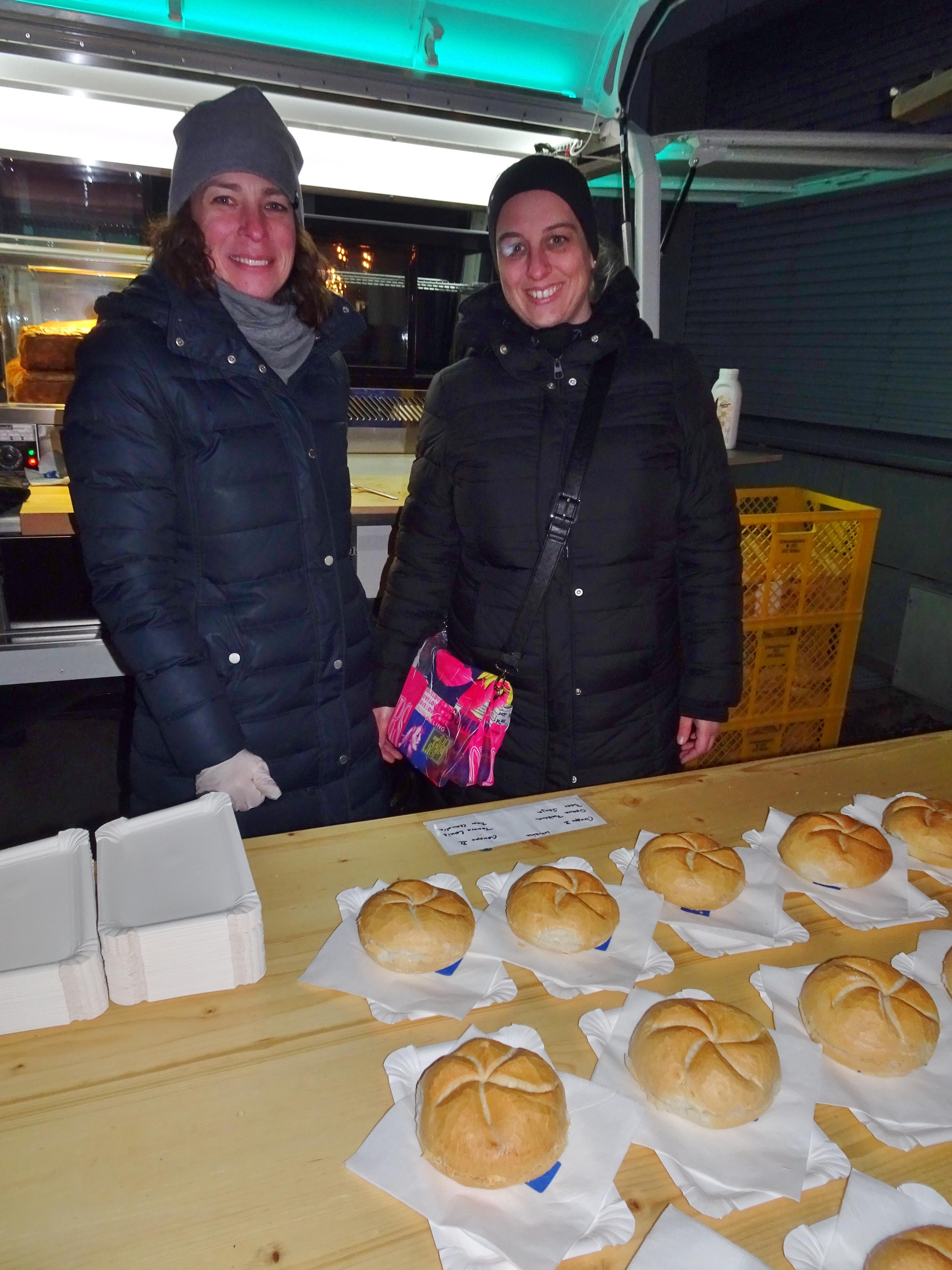 Bettina und Sonja verwöhnten die Gäste mit heißem Leberkäse.