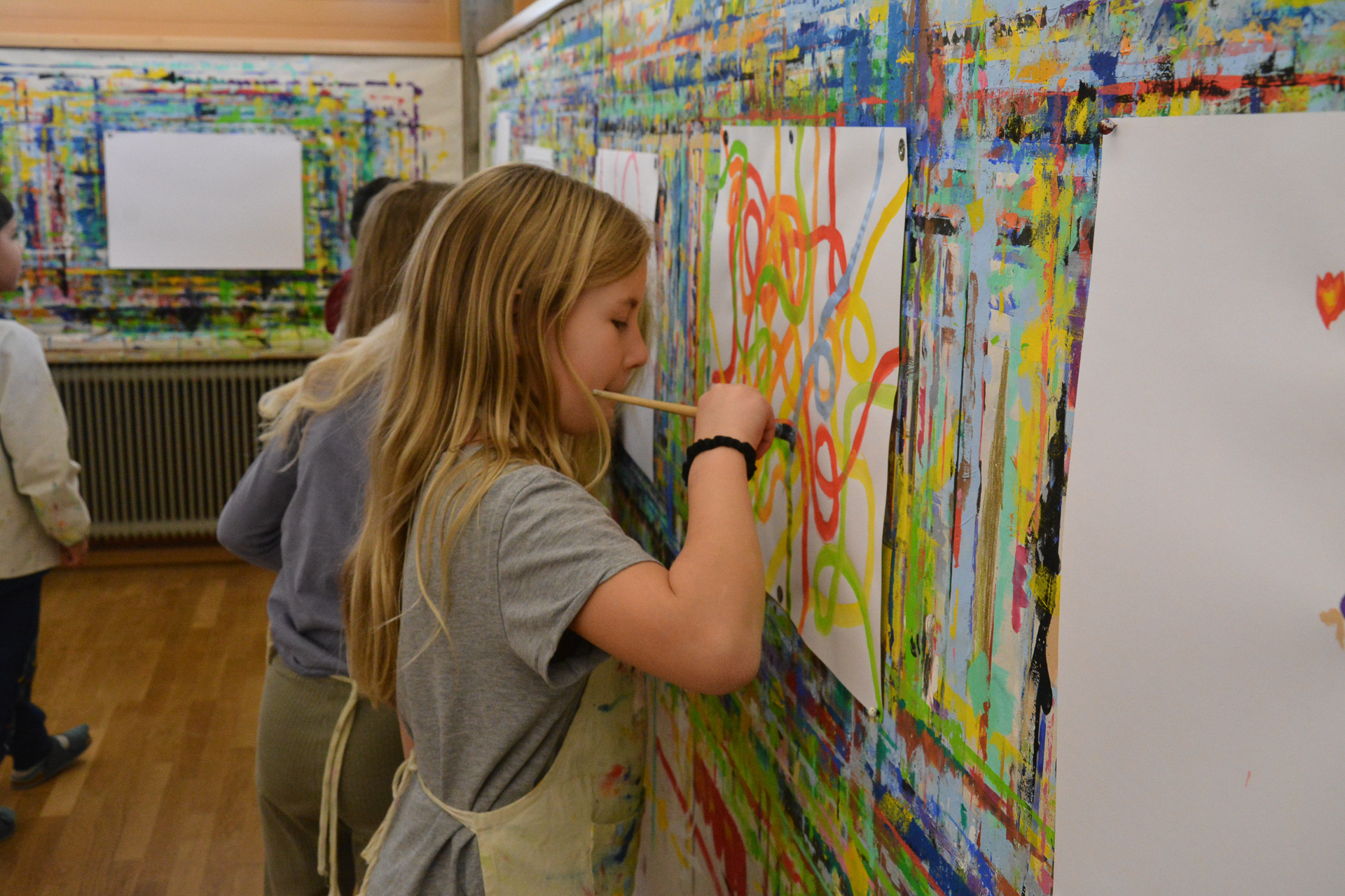 Ganz ohne Vorgaben und ohne Bewertung malen die Kinder nach Lust und Laune.