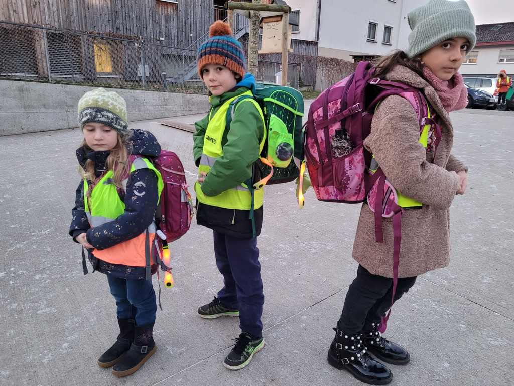 Die Kinder haben sich über die LED-Leuchtbänder gefreut – manche tragen sie am Rucksack.