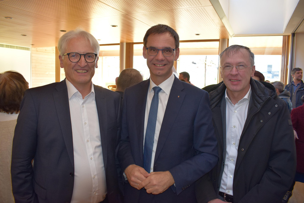 Interessiert: Bgm. Paul Sutterlüty, LH Markus Wallner und Direktor Mario Hammerer.